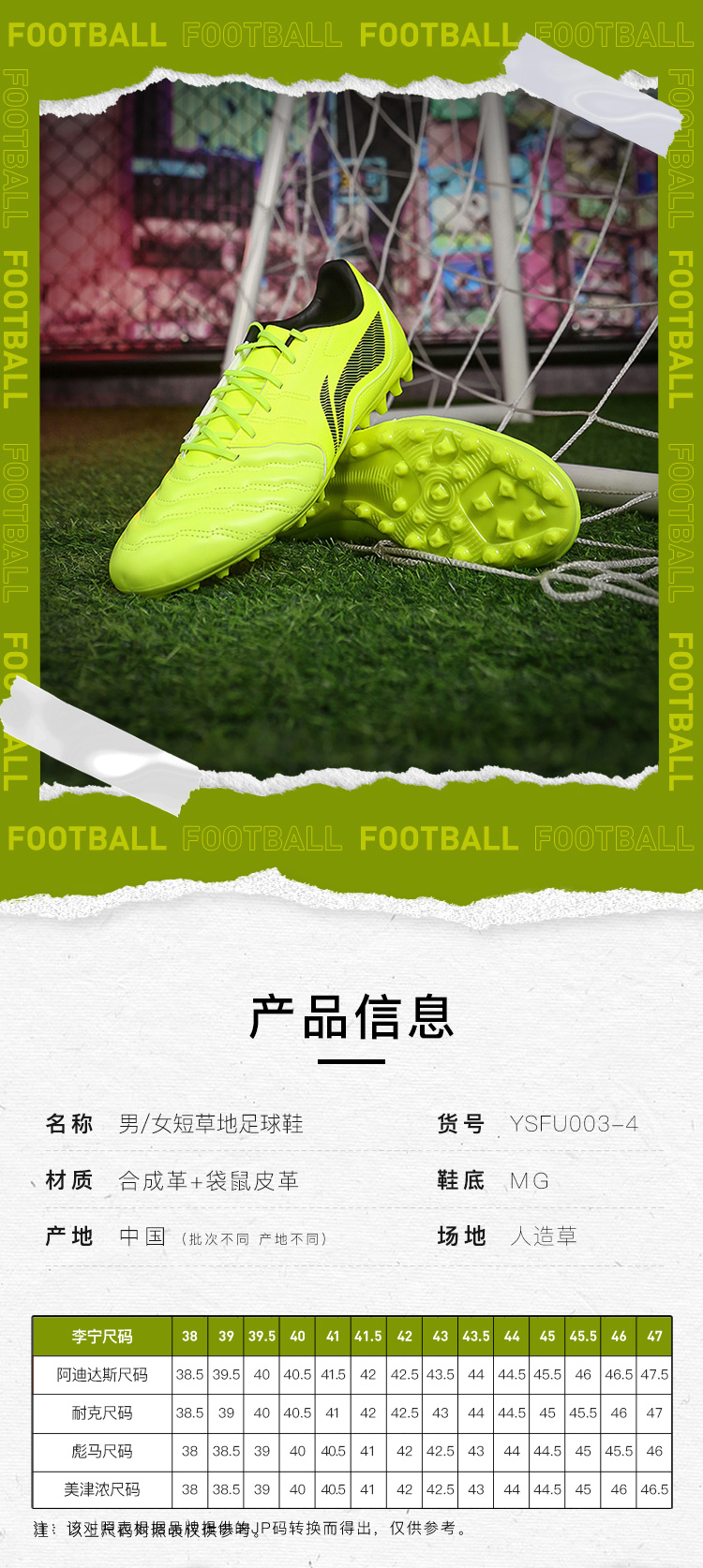 小李子Lining李宁长歌系列次顶MG短钉袋鼠皮足球训练鞋成人男YSFU003-4