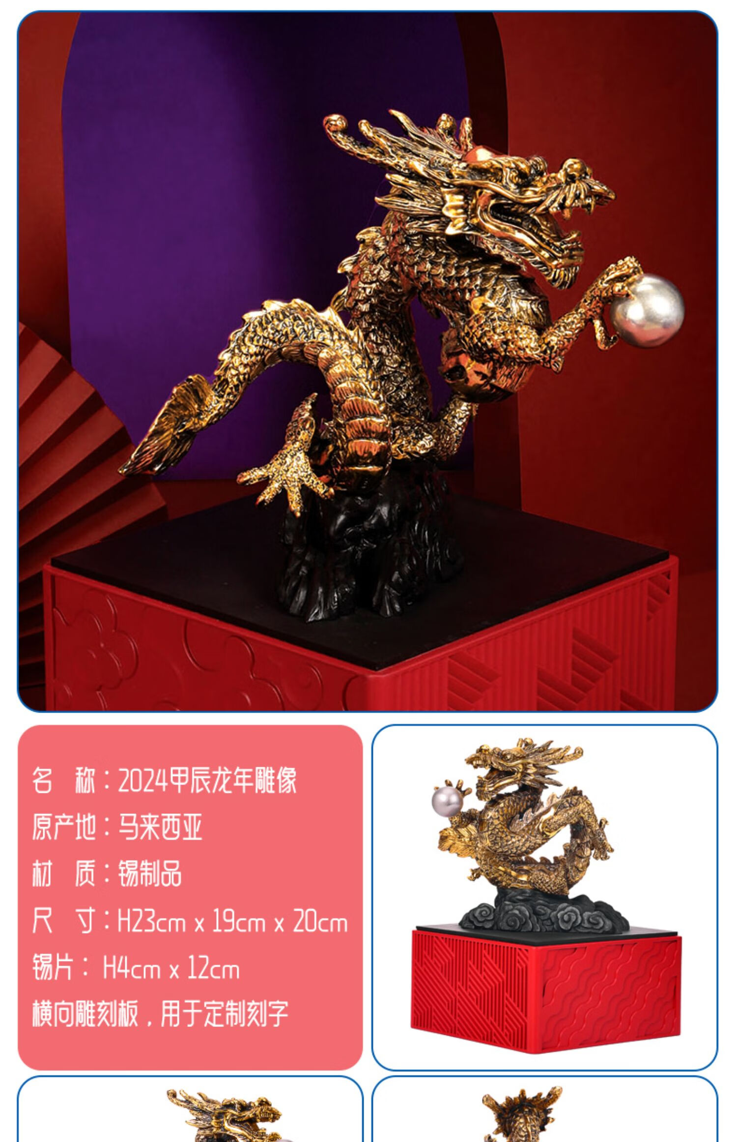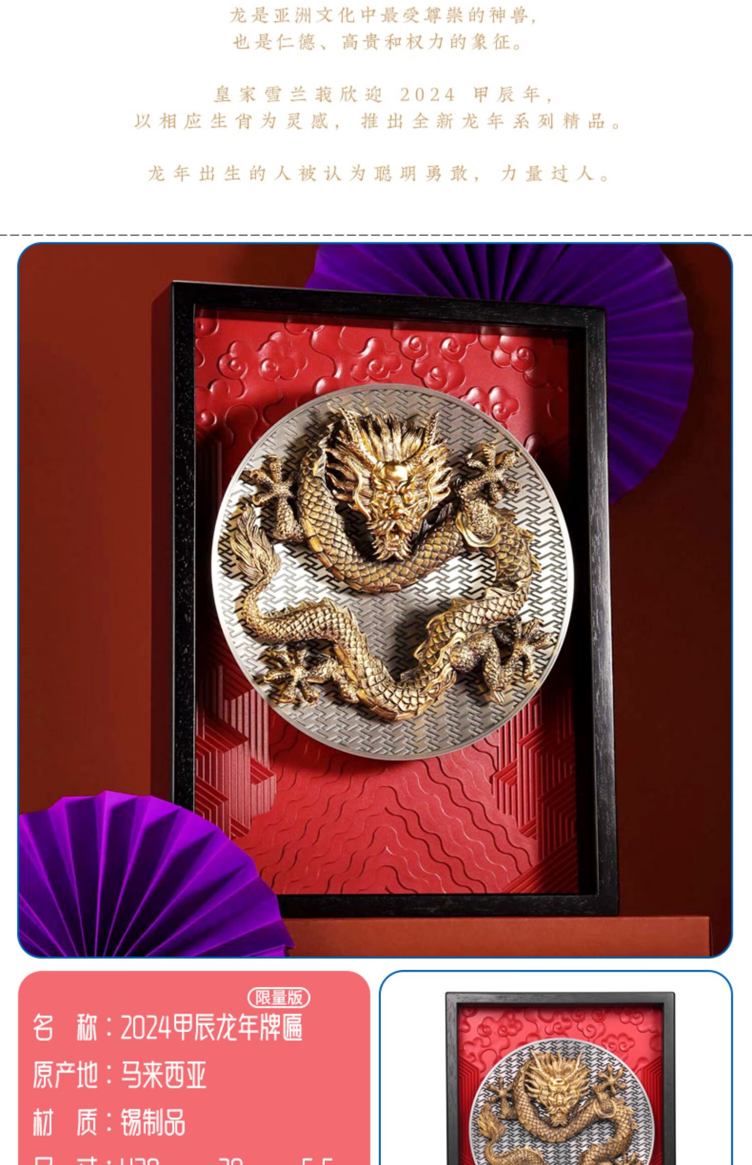 Royal Selangor皇家雪兰莪 限量款 龙年牌匾 2024龙年生肖锡制品送礼摆件 限量牌匾