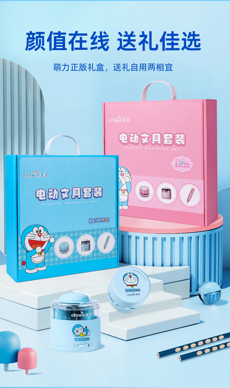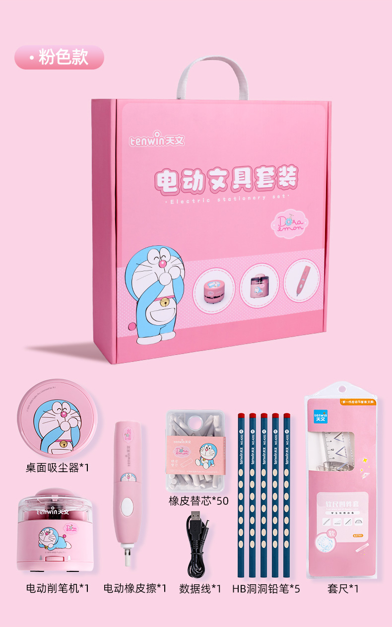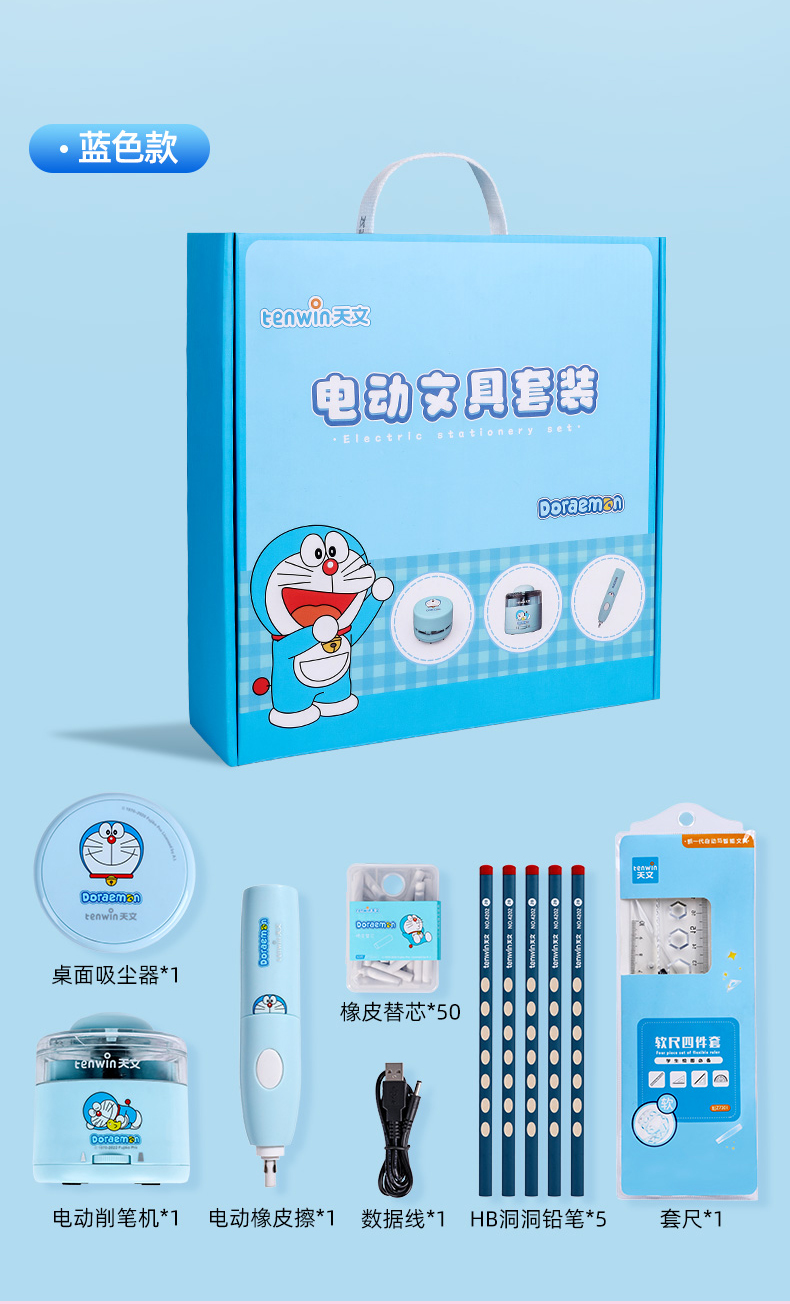【开学季】天文哆啦A梦天文电动文具套装礼盒自动削笔器卷笔刀转笔刀小学生削笔刀一年级男孩女孩六一儿童节礼物用品大礼包A6302/A6303