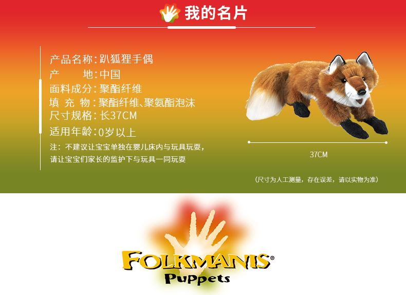 Folkmanis Puppets红狐狸玩具/2576玩偶毛绒玩具礼物