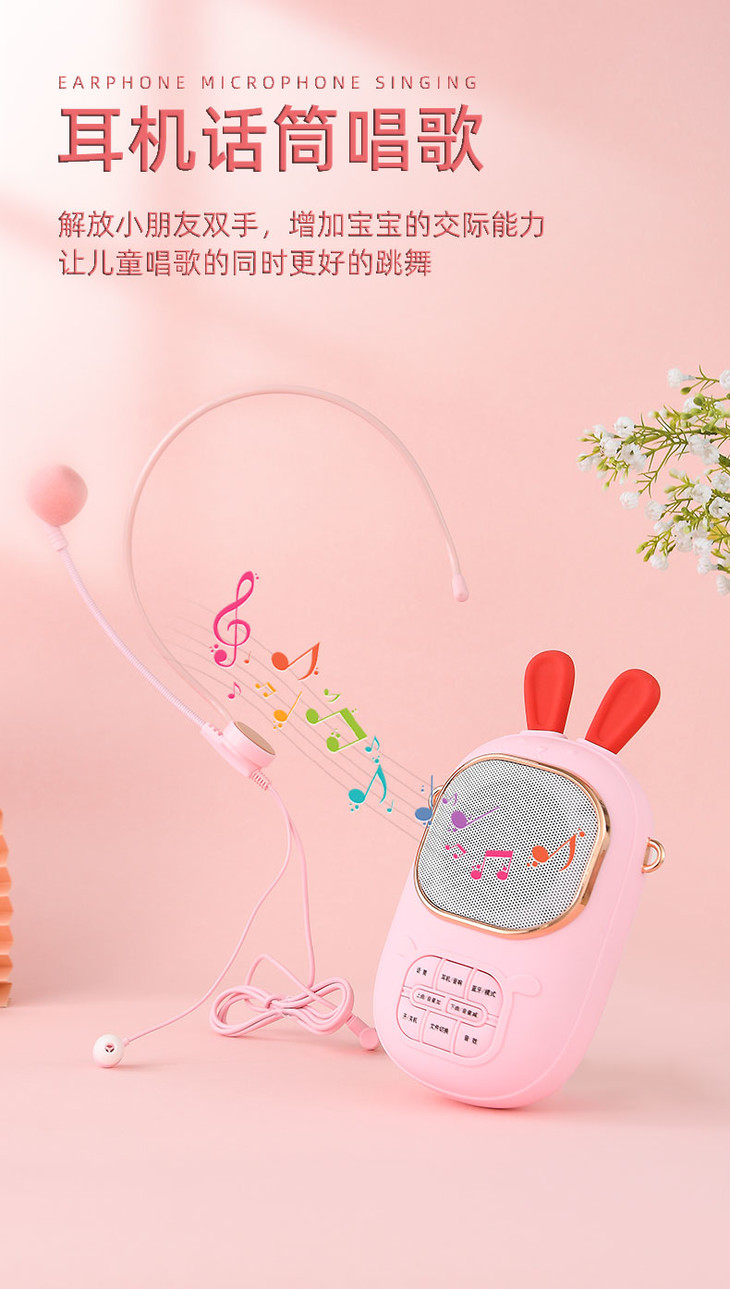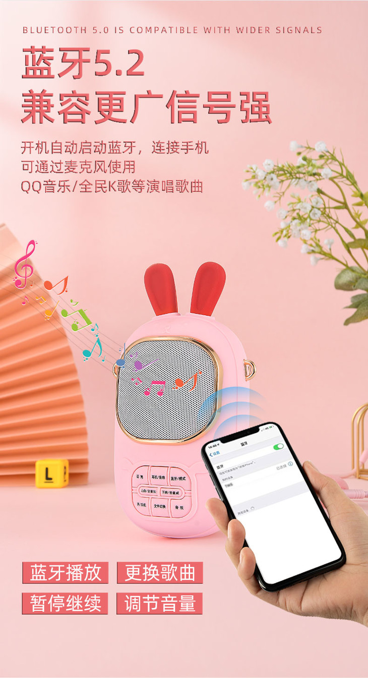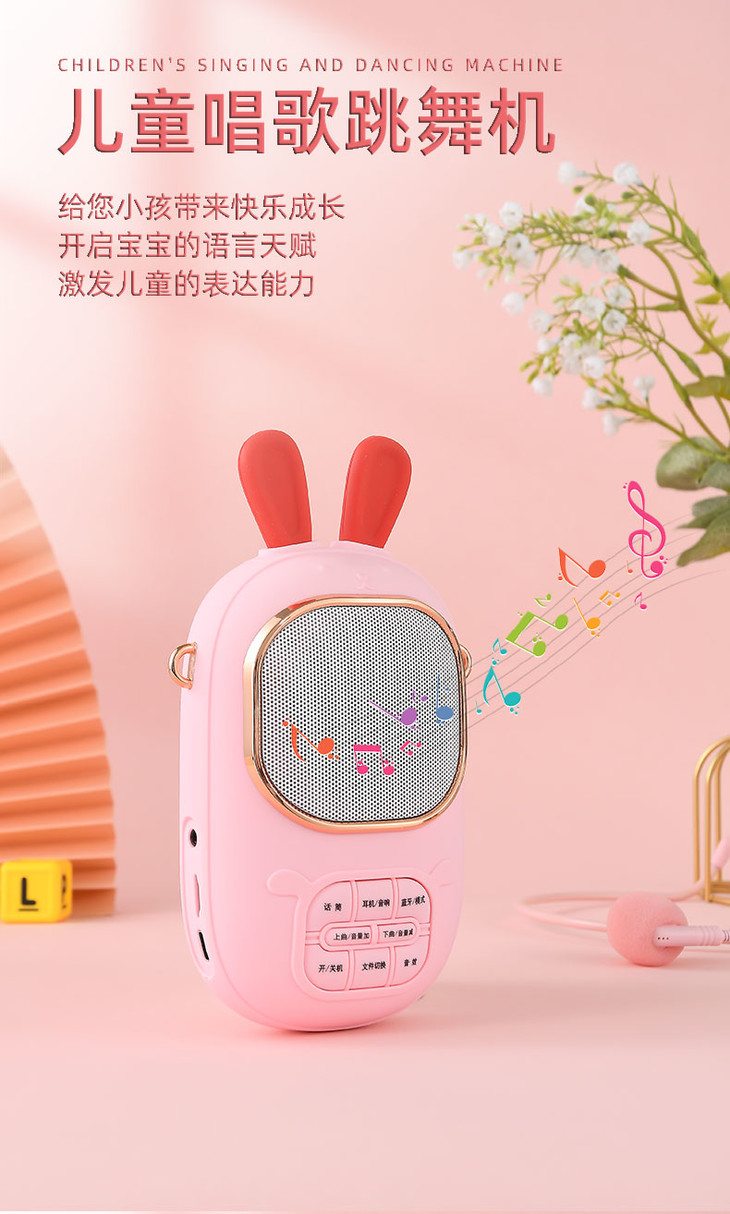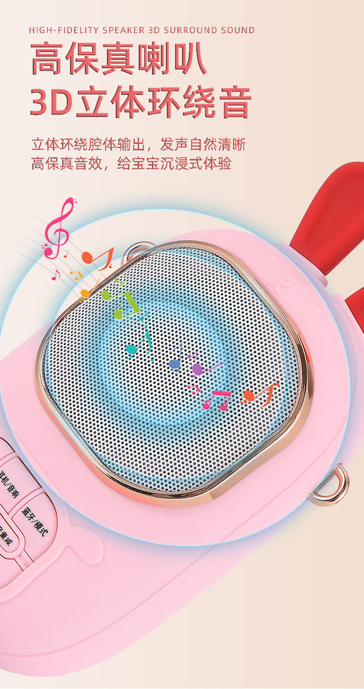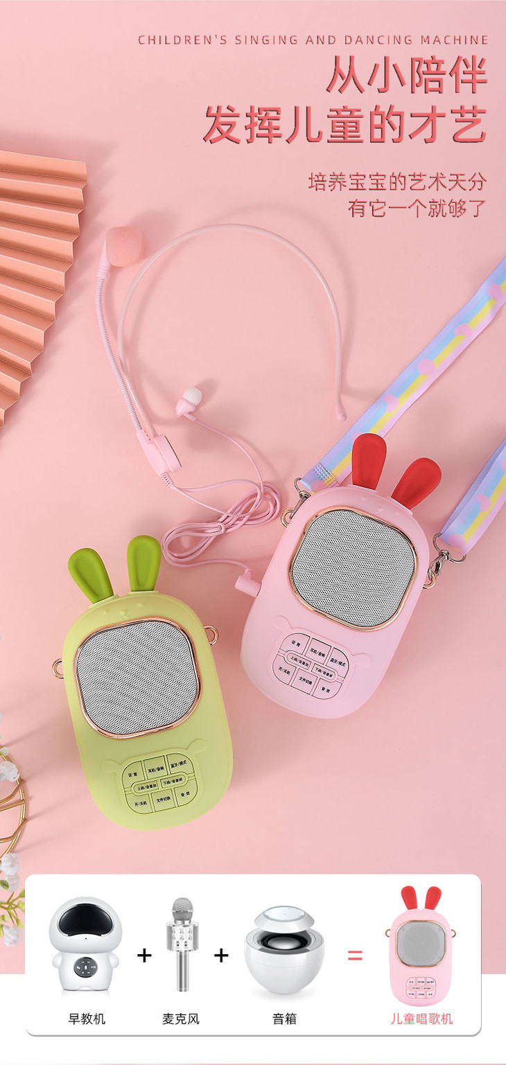 2023年新款儿童便携式兔子卡拉OK音乐音响话筒一体麦克风女孩唱歌