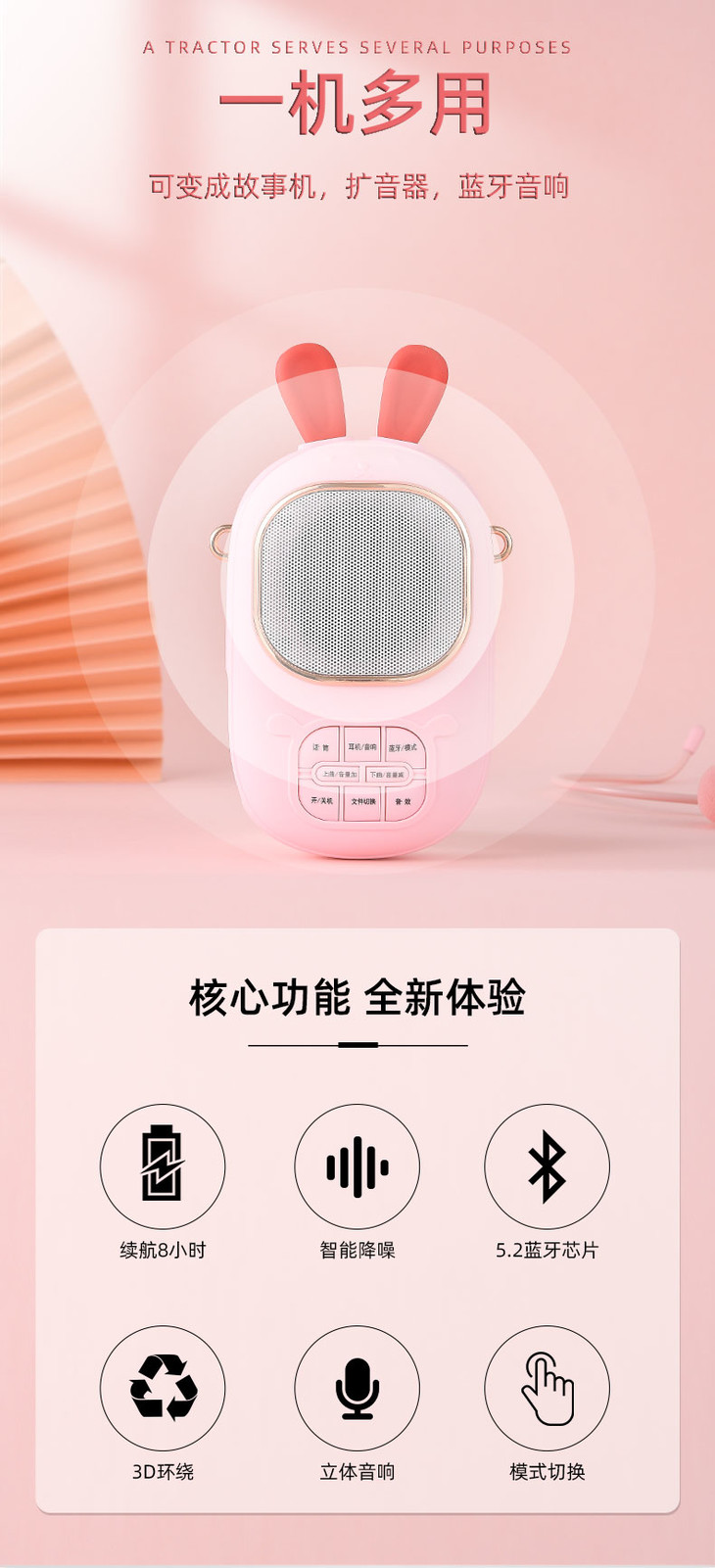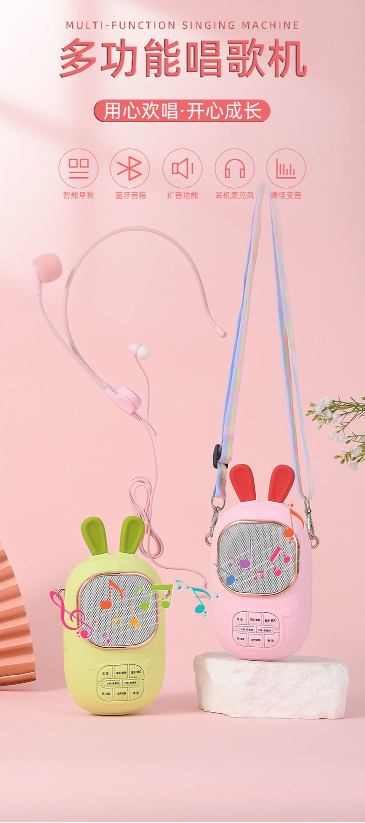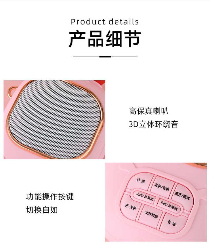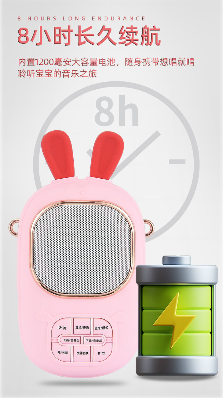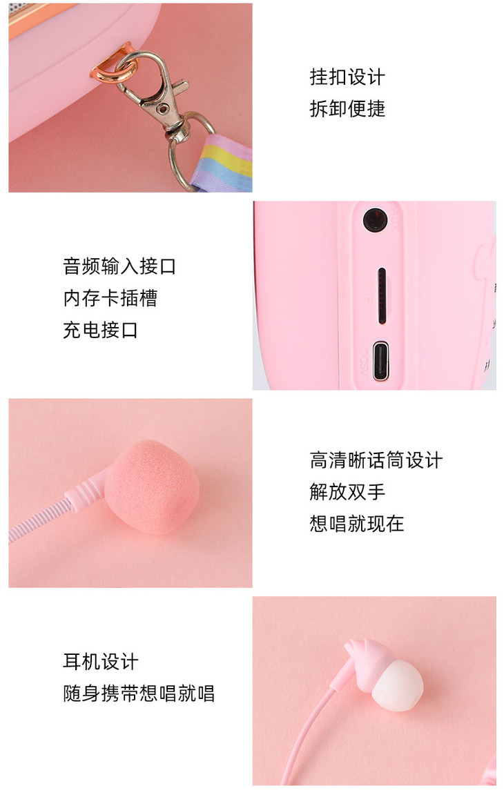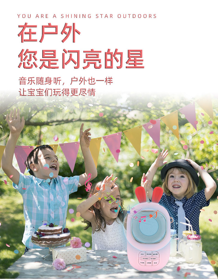 2023年新款儿童便携式兔子卡拉OK音乐音响话筒一体麦克风女孩唱歌