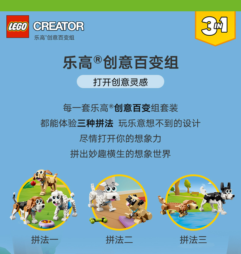 乐高积木31137乐高创意百变系列 萌萌小狗
