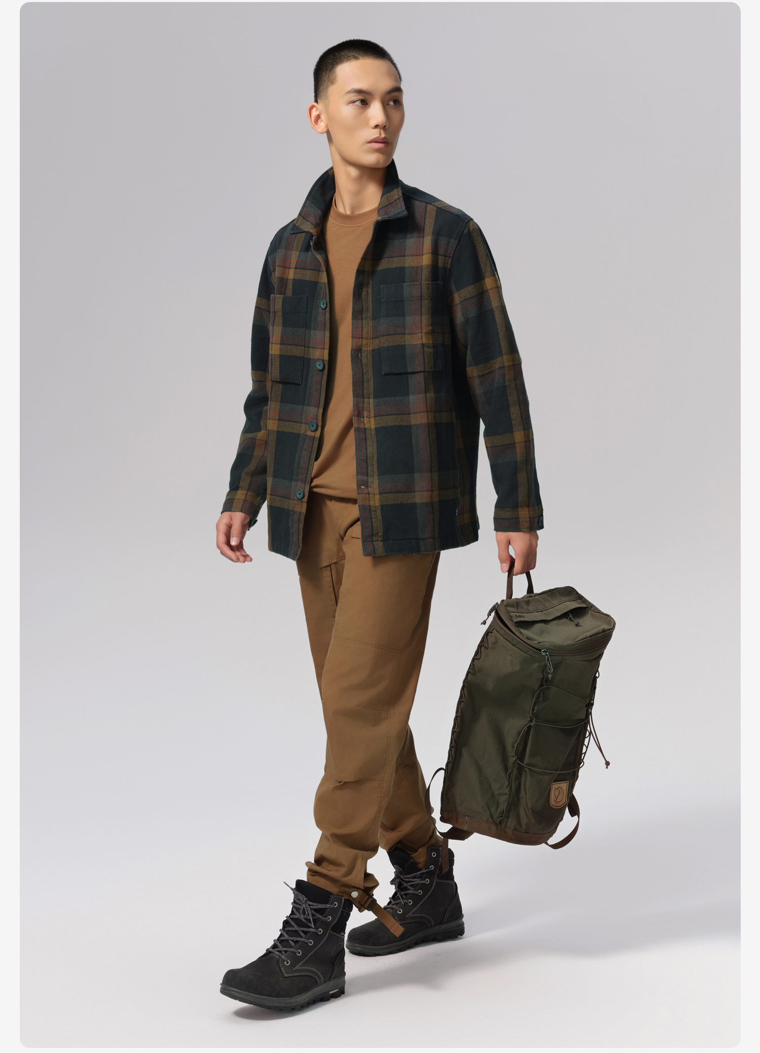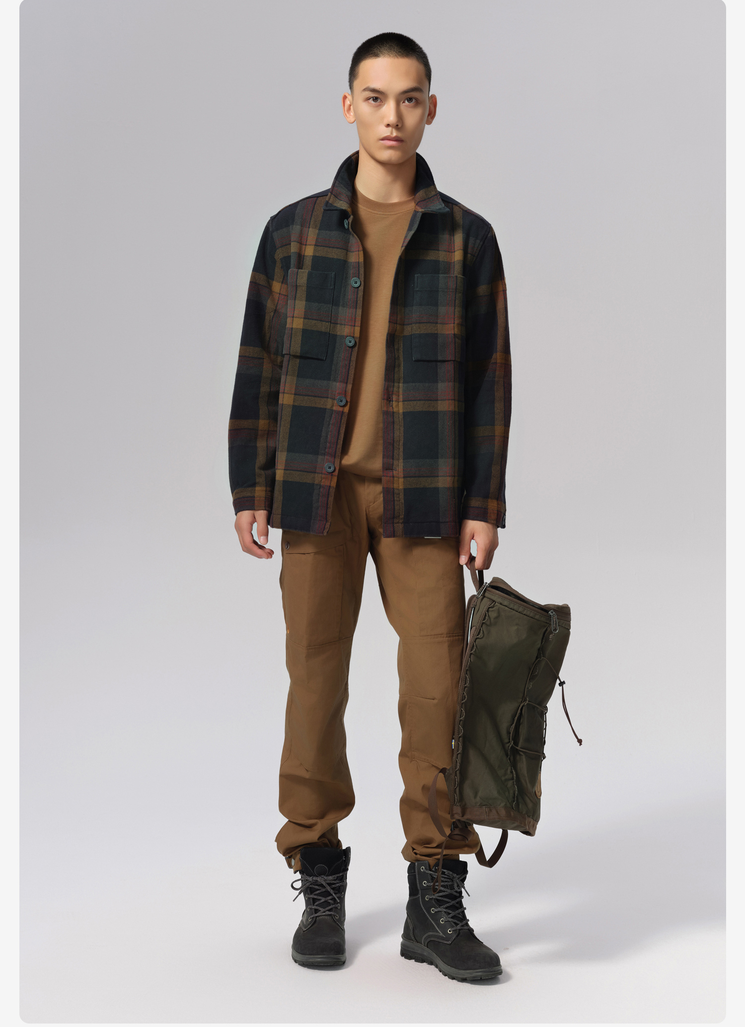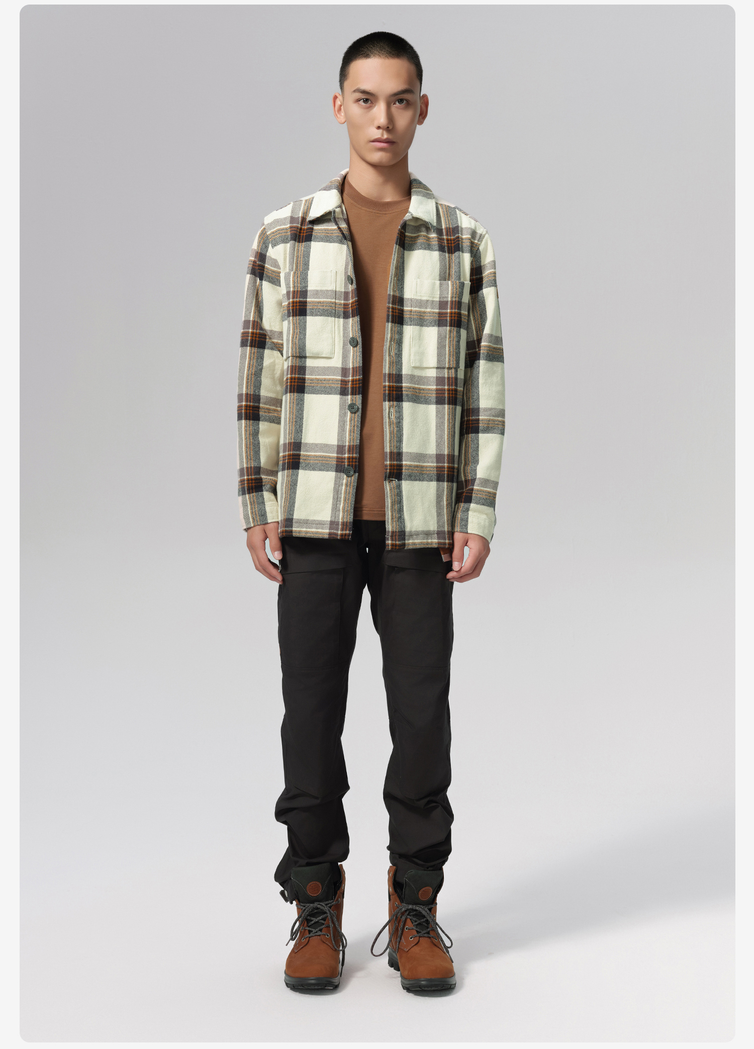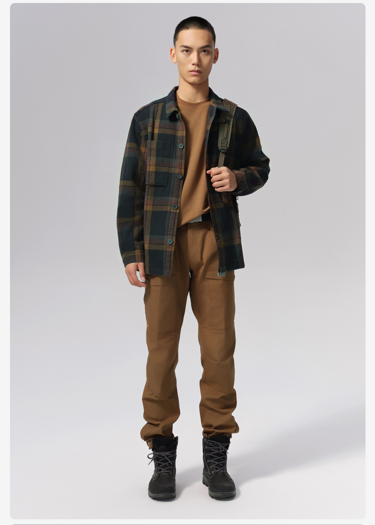 北极狐 男士格子衬衫外套 2024秋冬新款加厚保暖长袖衬衣12600226
