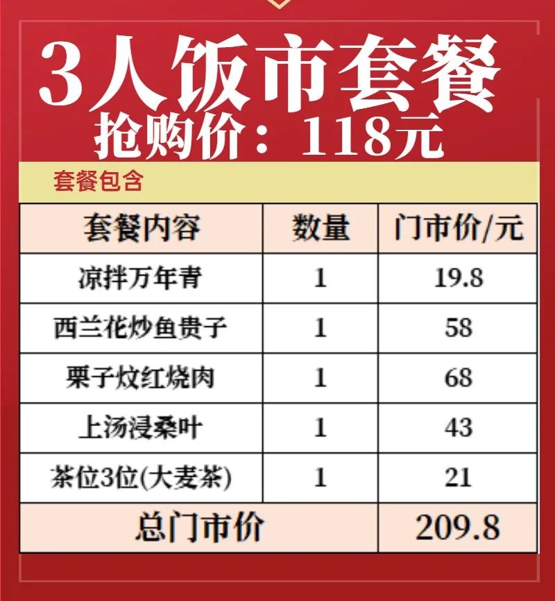 3人饭市套餐抢购价:118元