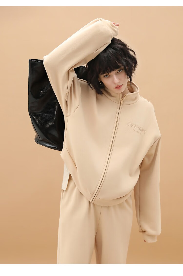 【限时特惠】COCOBELLA立体字母印花加绒立领外套保暖银狐绒拉链卫衣SC911