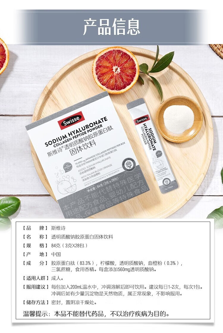 Swisse斯维诗 胶原水光粉 透明质酸钠胶原蛋白肽固体饮料3g*28袋