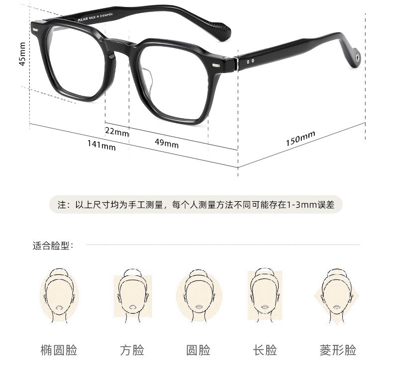 普莱斯光学镜框ZBG23009A 早八素颜神器 经典黑方框 优质板材 男女同款
