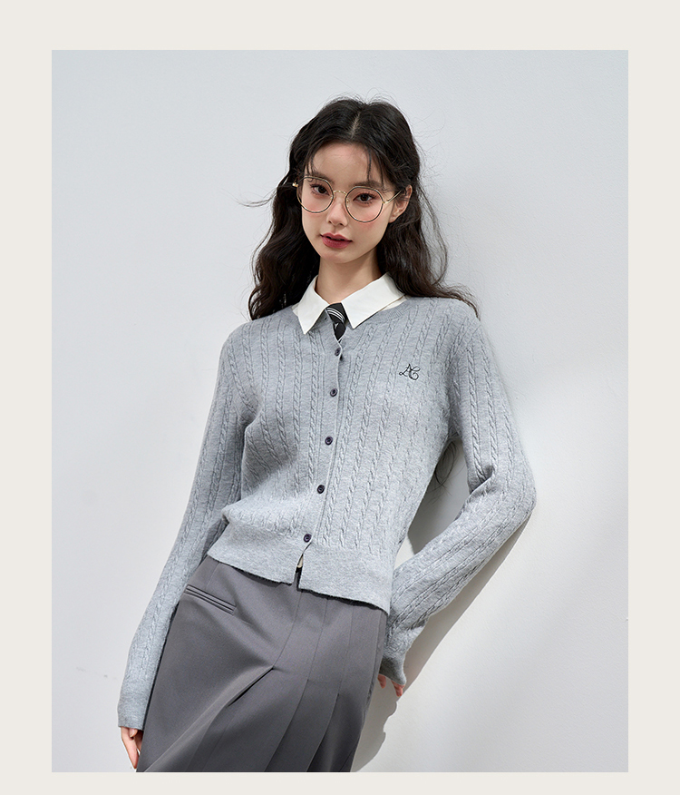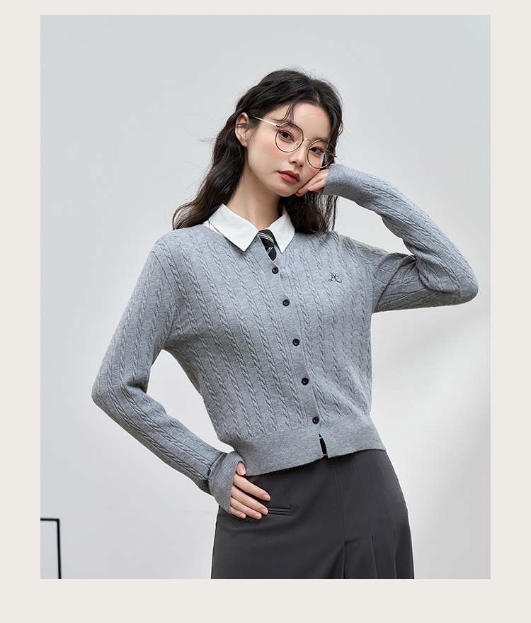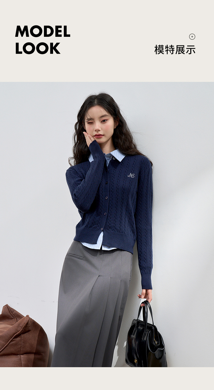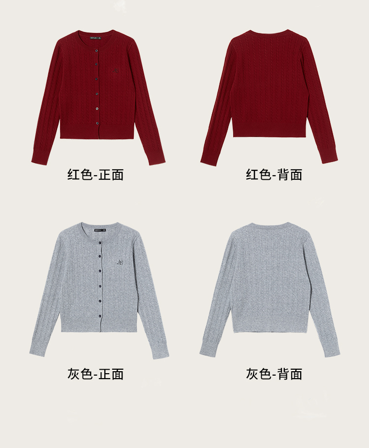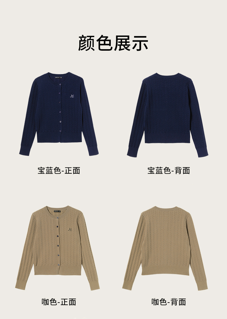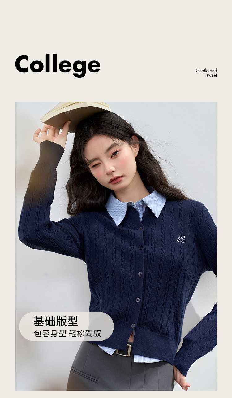 西遇短款针织衫外套女新款学院风长袖修身圆领毛衣开衫D3342317