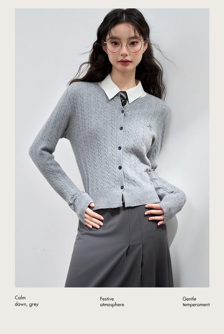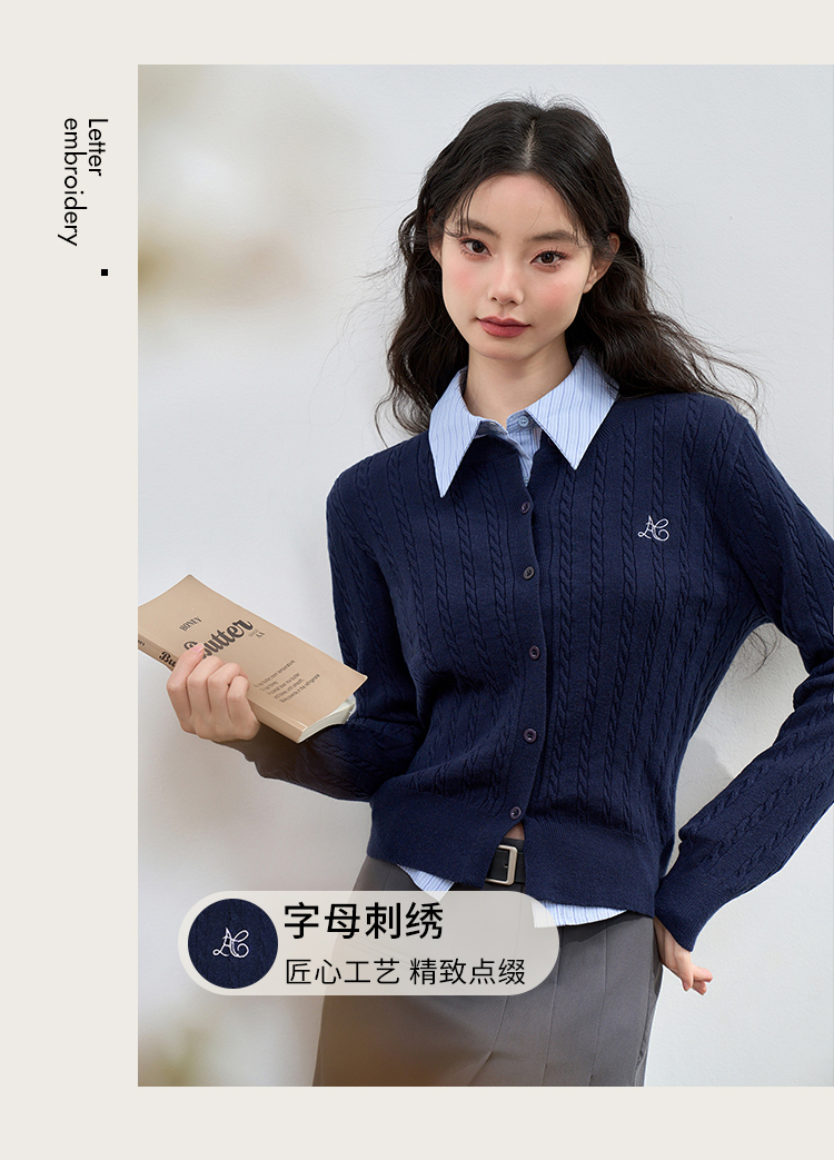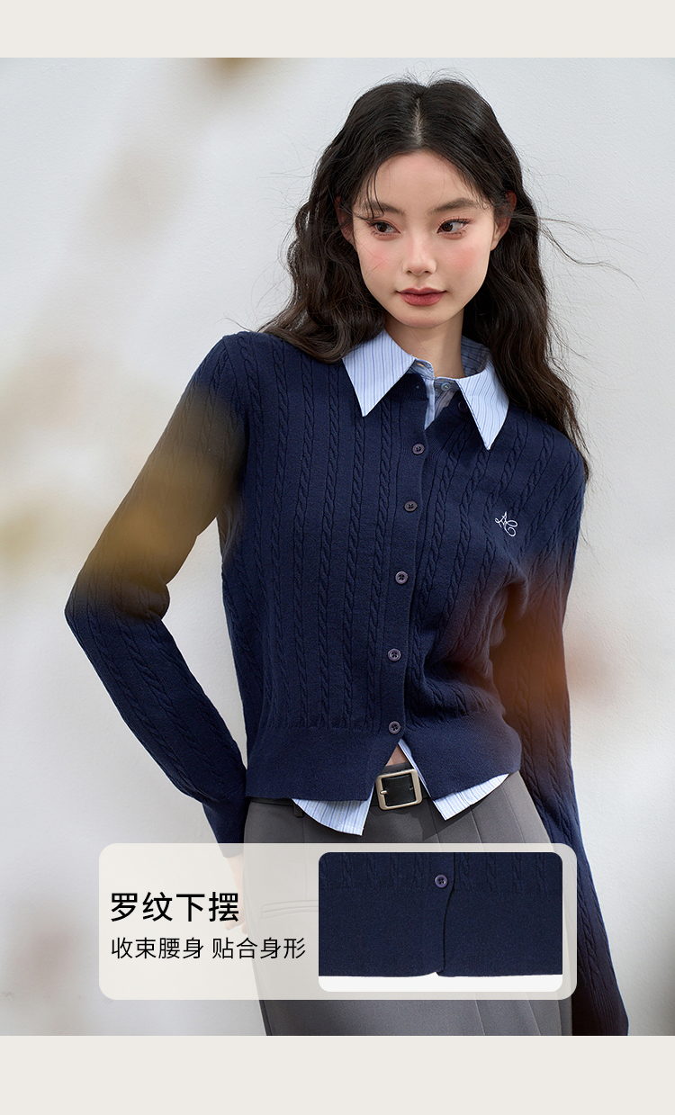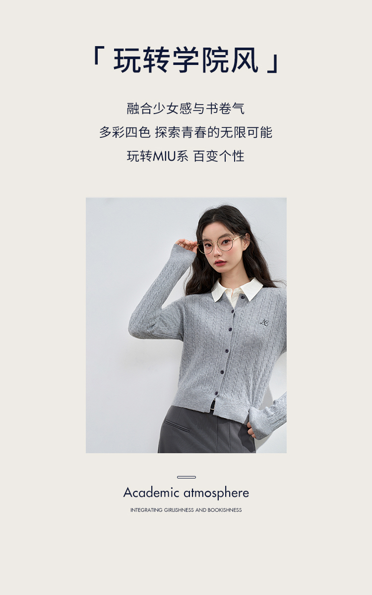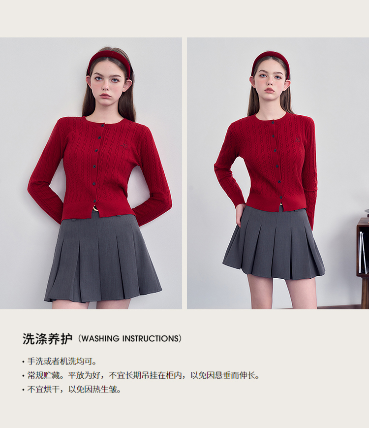 西遇短款针织衫外套女新款学院风长袖修身圆领毛衣开衫D3342317