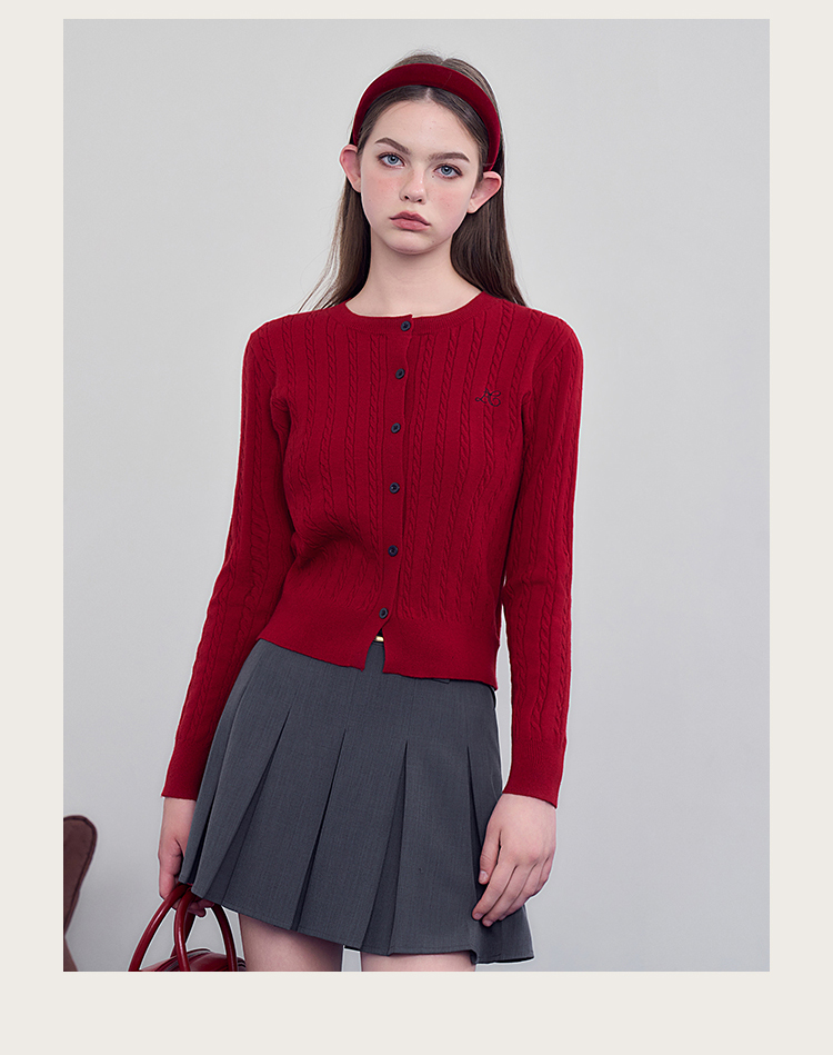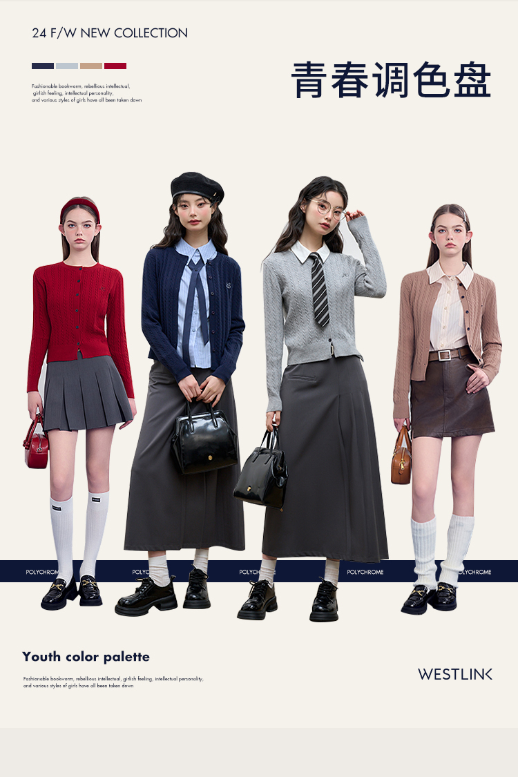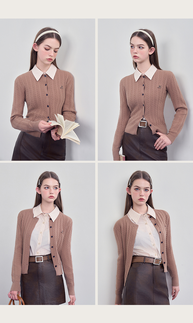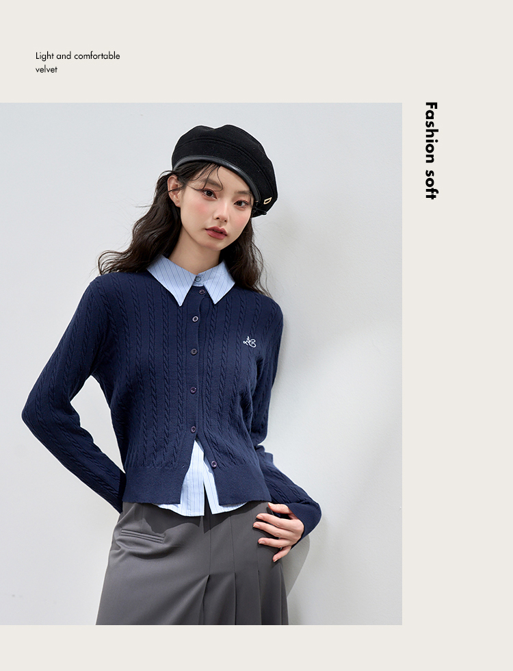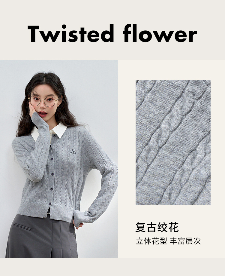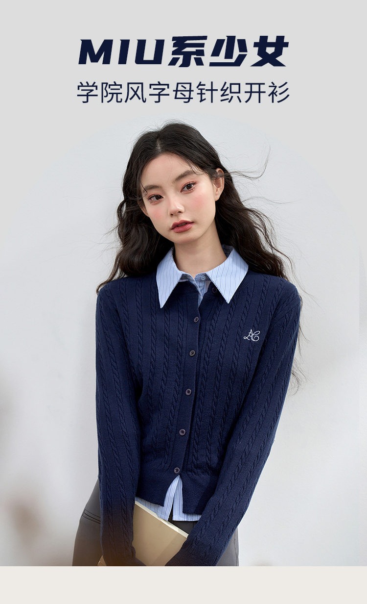 西遇短款针织衫外套女新款学院风长袖修身圆领毛衣开衫D3342317