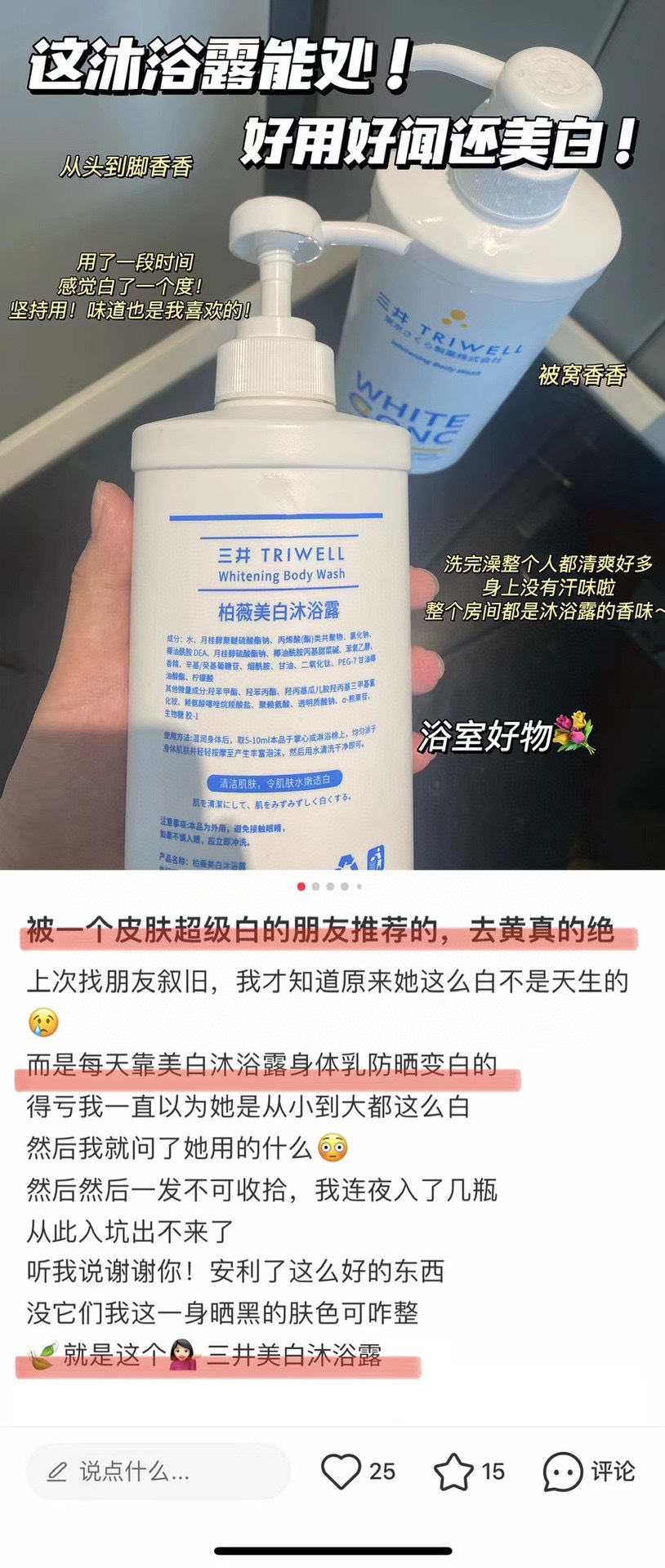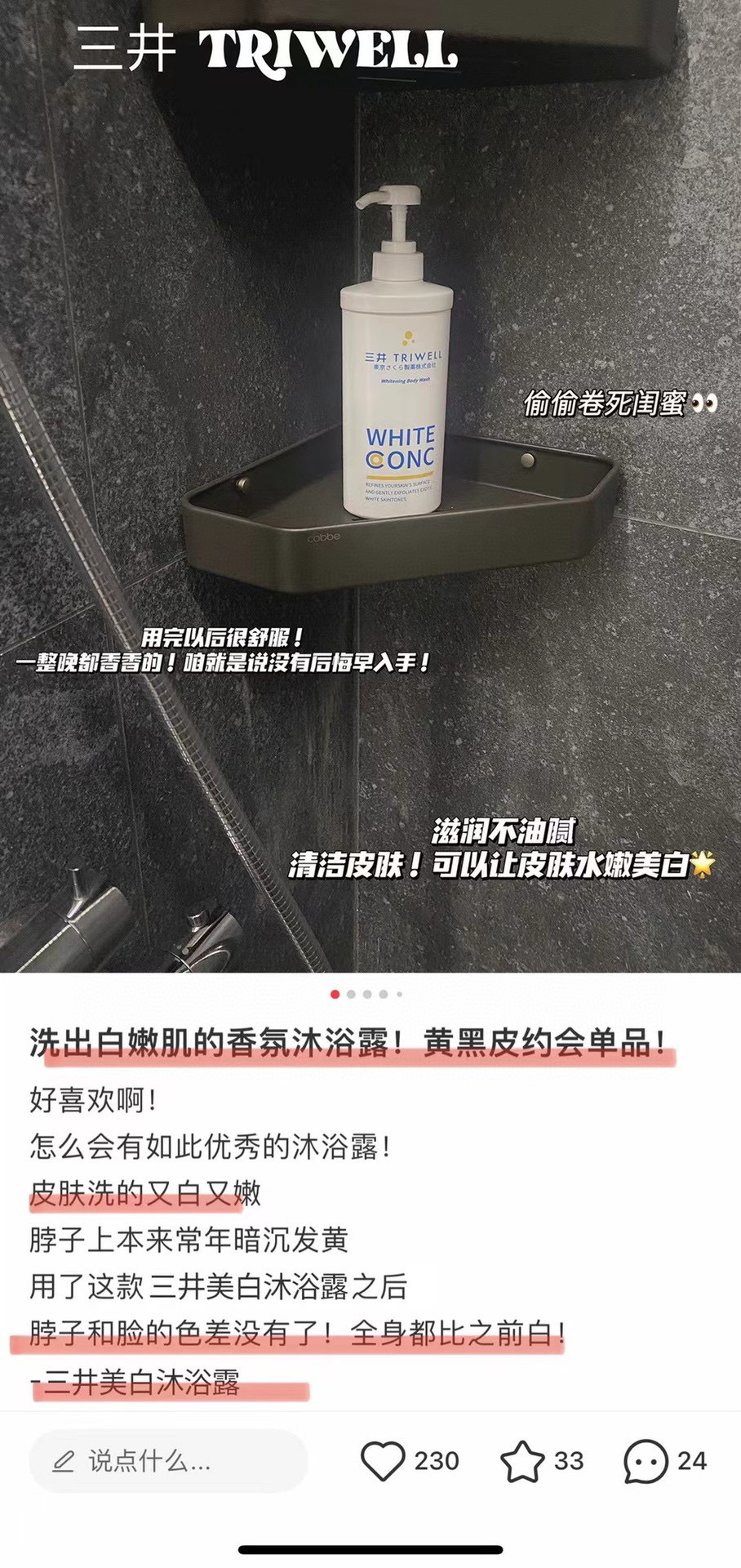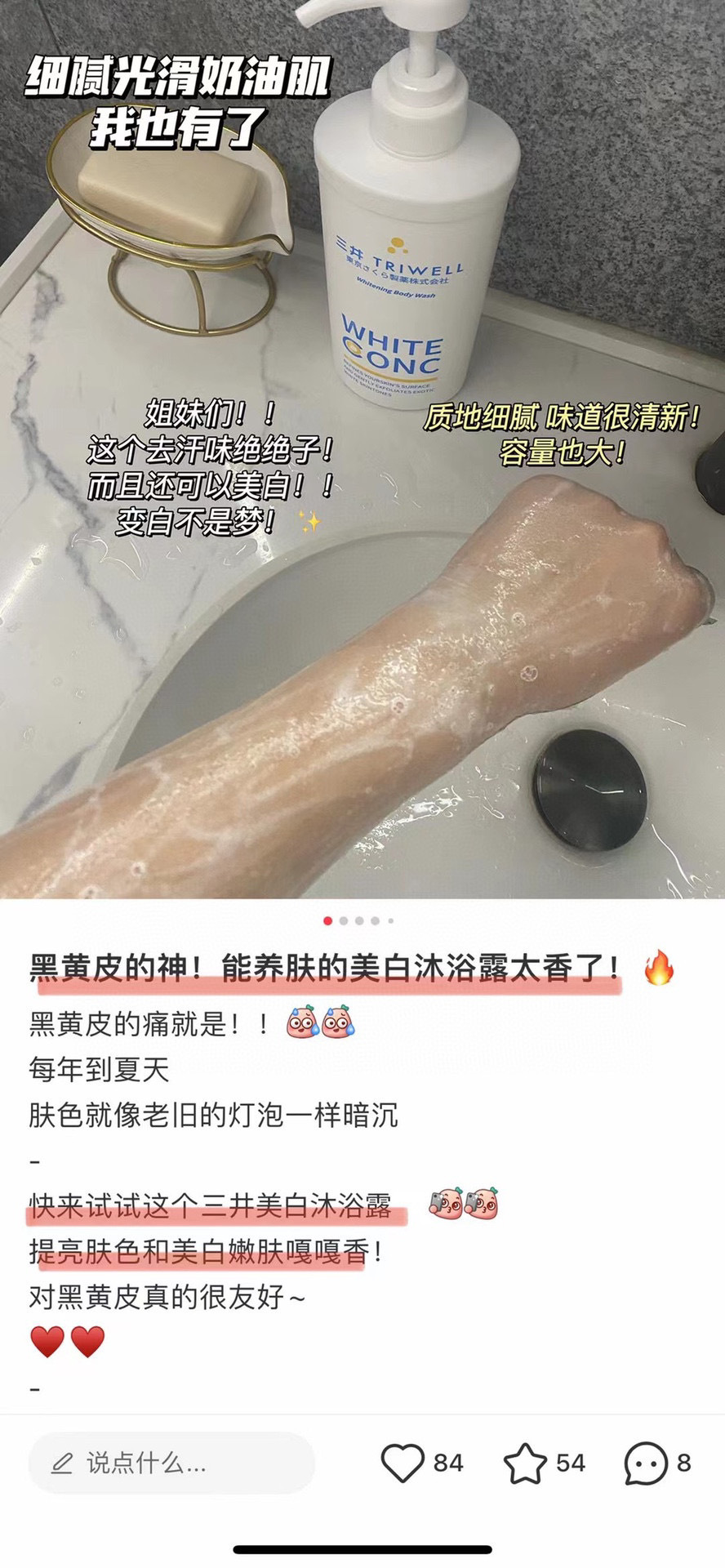 深层清洁✅ 美白提亮✅ 水润保湿✅蕴含多重美白成分和植物精粹,用几次后,全身就像换了皮一样又亮又滑!