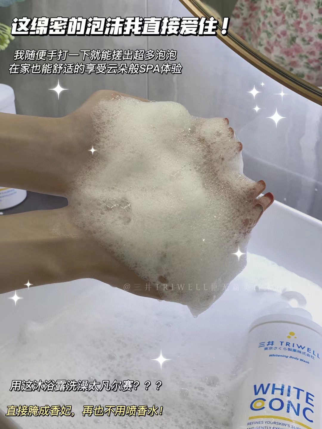 揉出来的泡沫超级丰富绵密☁️每次洗澡都像在洗泡泡浴🛁洗完后皮肤润润的,白嫩又细滑,还有股若有似无的香味,真的太撩人了!