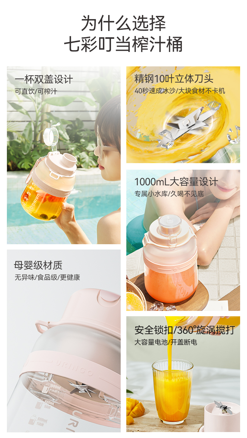 七彩叮当榨汁杯家用多功能榨汁机小型便携式电动吨吨榨汁桶果汁杯