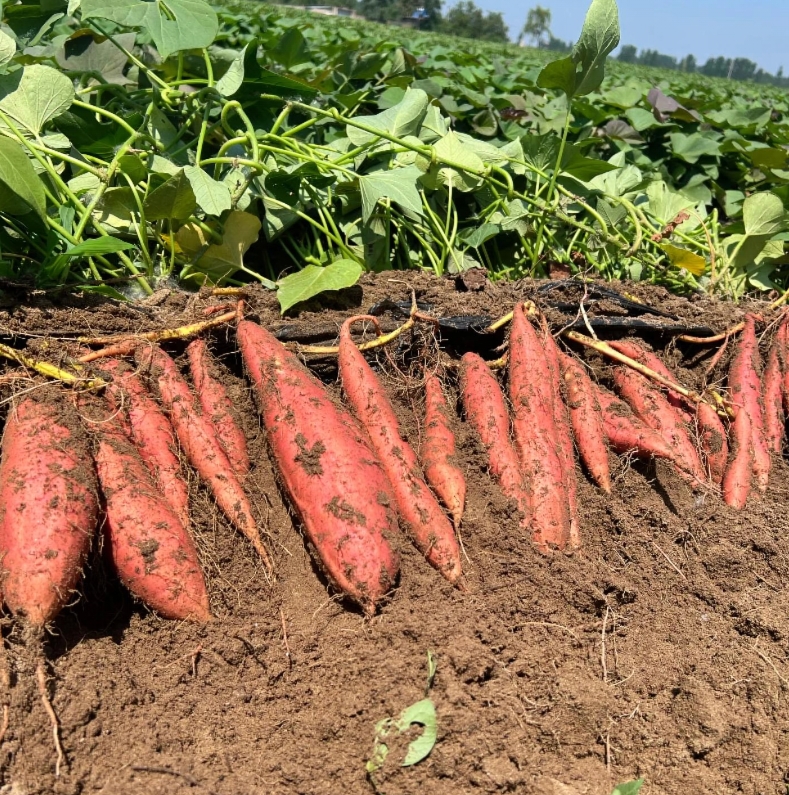 这里地处胶东半岛,丘陵地貌让土壤疏松透气,地下矿富硒土壤,物质丰富,富含沙质的土壤既能锁住水分,又能及时排水,恰好契合烟薯25号“爱干爽、怕水涝的生长性子。加之温带季风气候的加持,全年充足的日照时长超过2800小时,昼夜温差常年维持在10℃以上--白天阳光促生长,夜晚低温锁糖分,就像给红薯装上了“天然糖罐”,让糖分在果肉里慢慢沉淀,积累出远超普通产区的甜润。