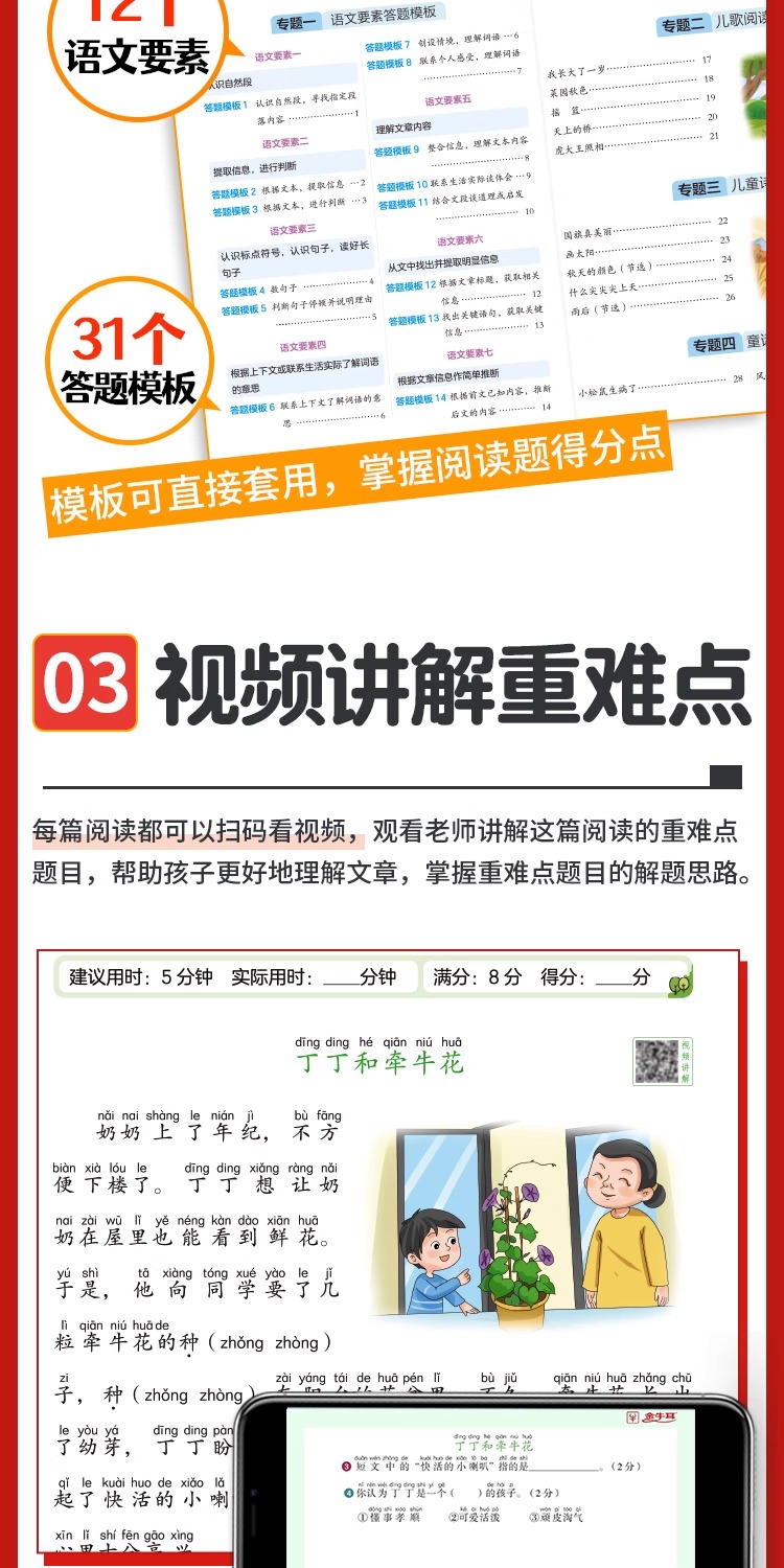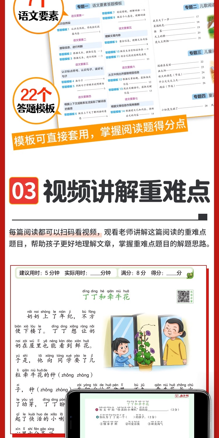 金牛耳 语文阅读答题模板 一二三四五六年级(AY)