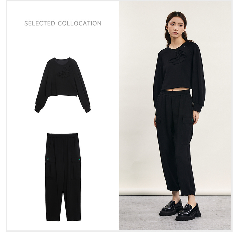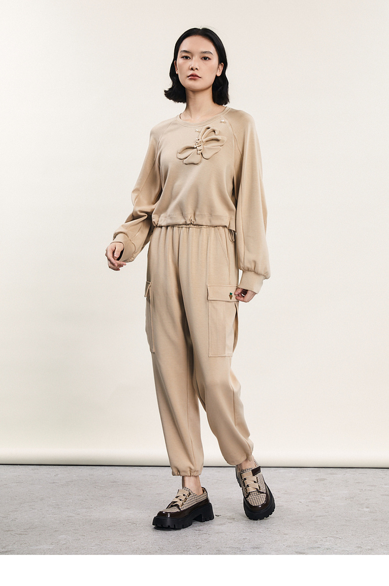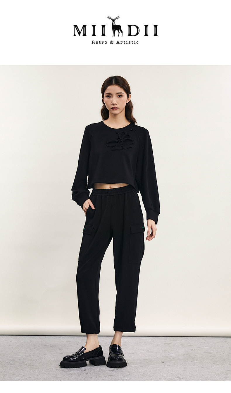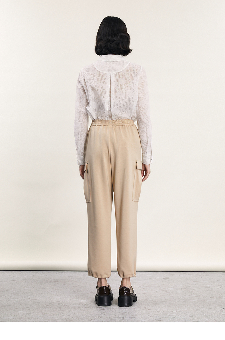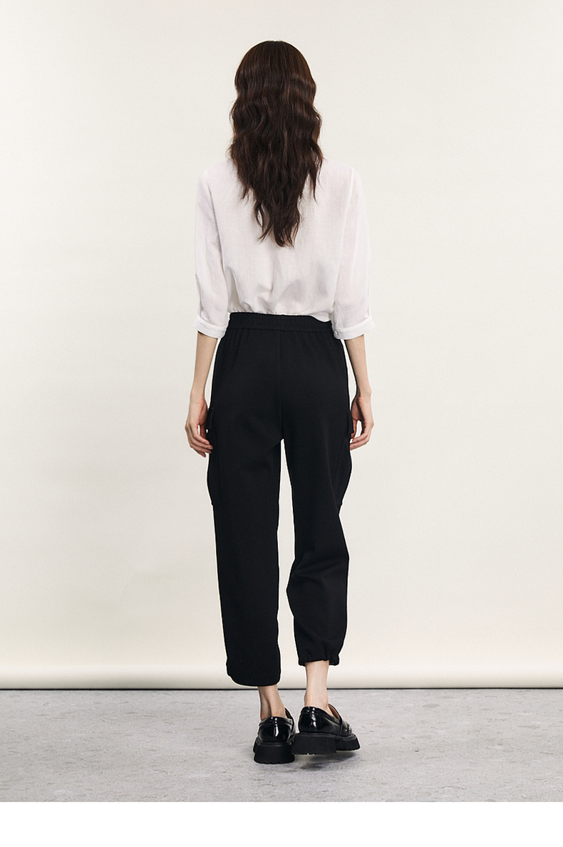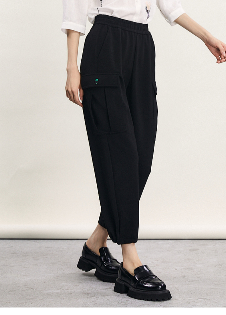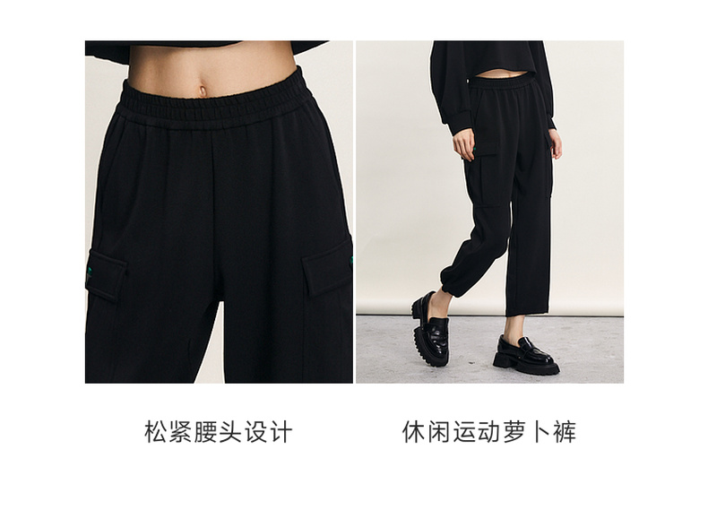 谜底休闲裤女2024春新款时尚百搭大口袋宽松运动风长裤241MK0153