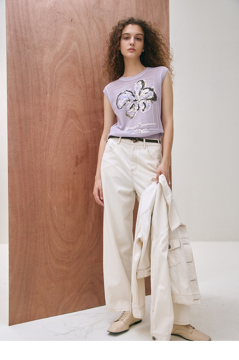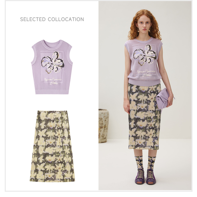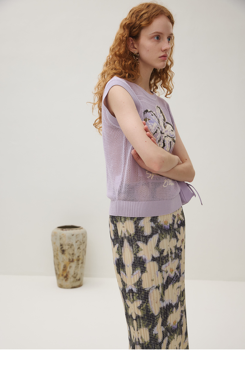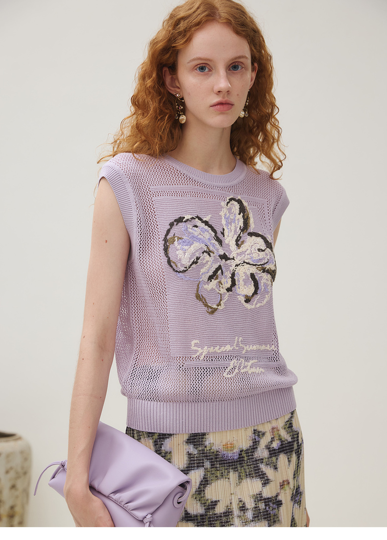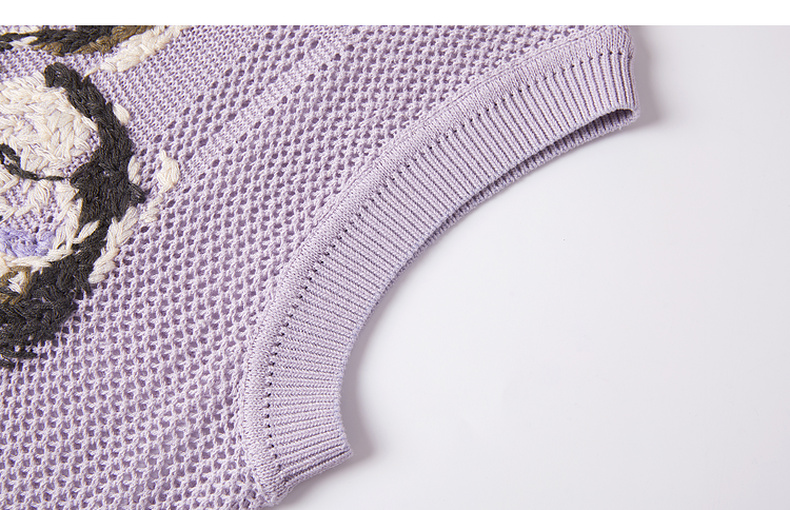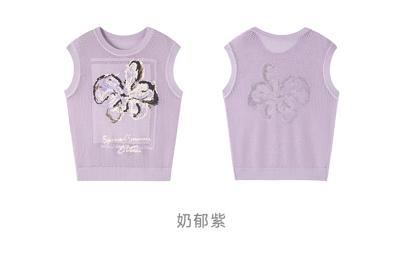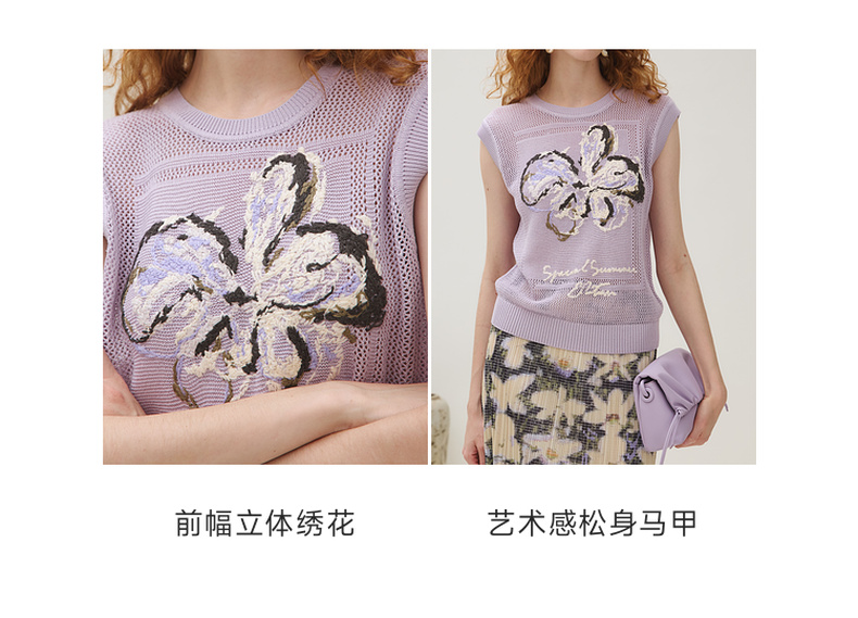 谜底套头针织衫无袖女2025秋季新品文艺风圆领刺绣短款253MZ1308