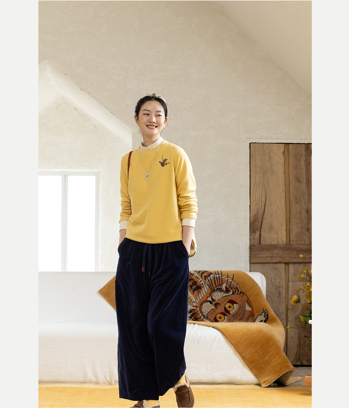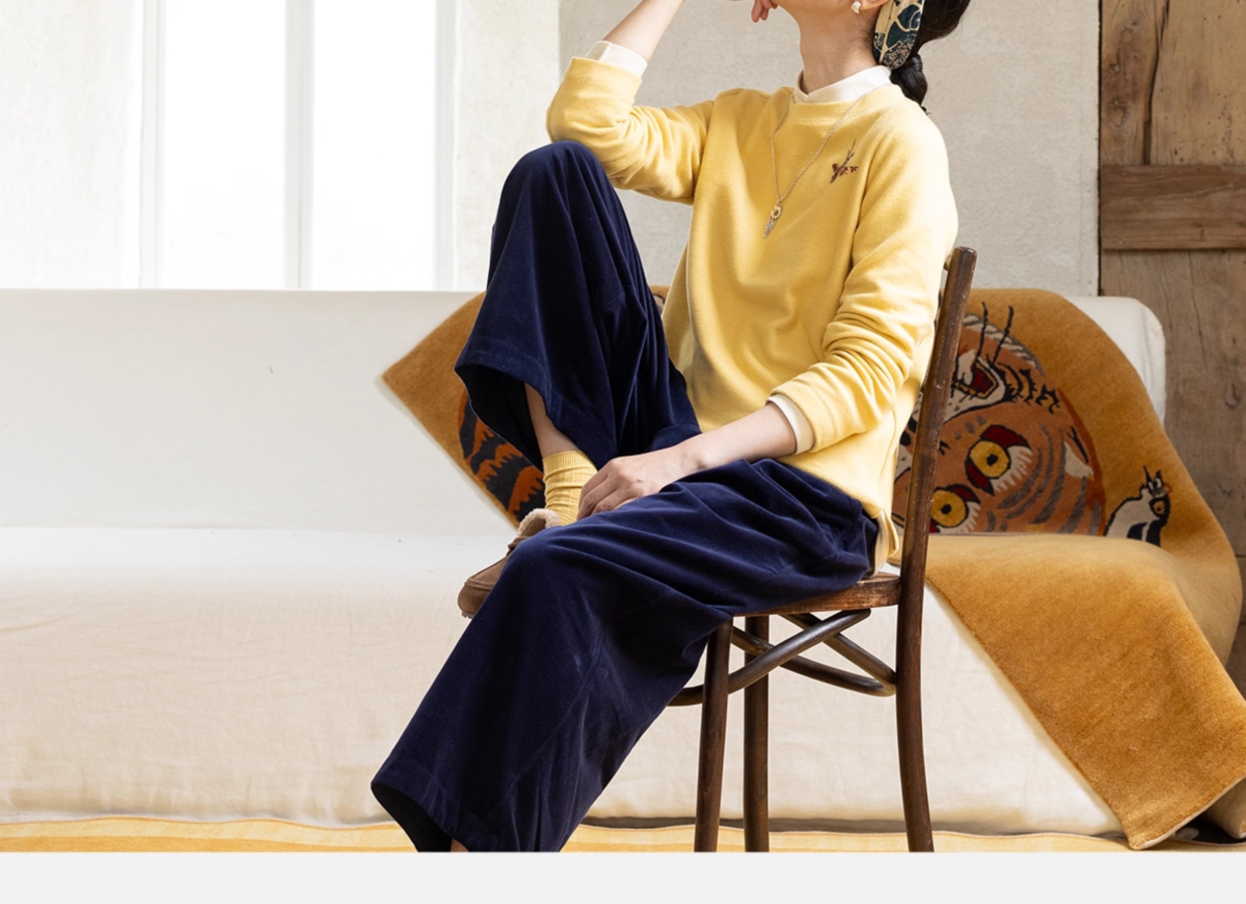 牧衣游原创 净色棉绒裤子女冬季新款保暖厚实百搭宽松休闲裤 琳课