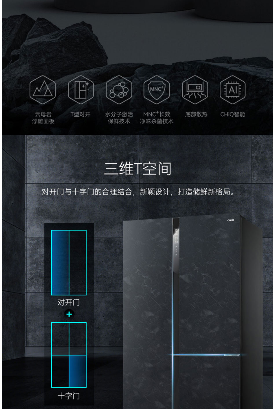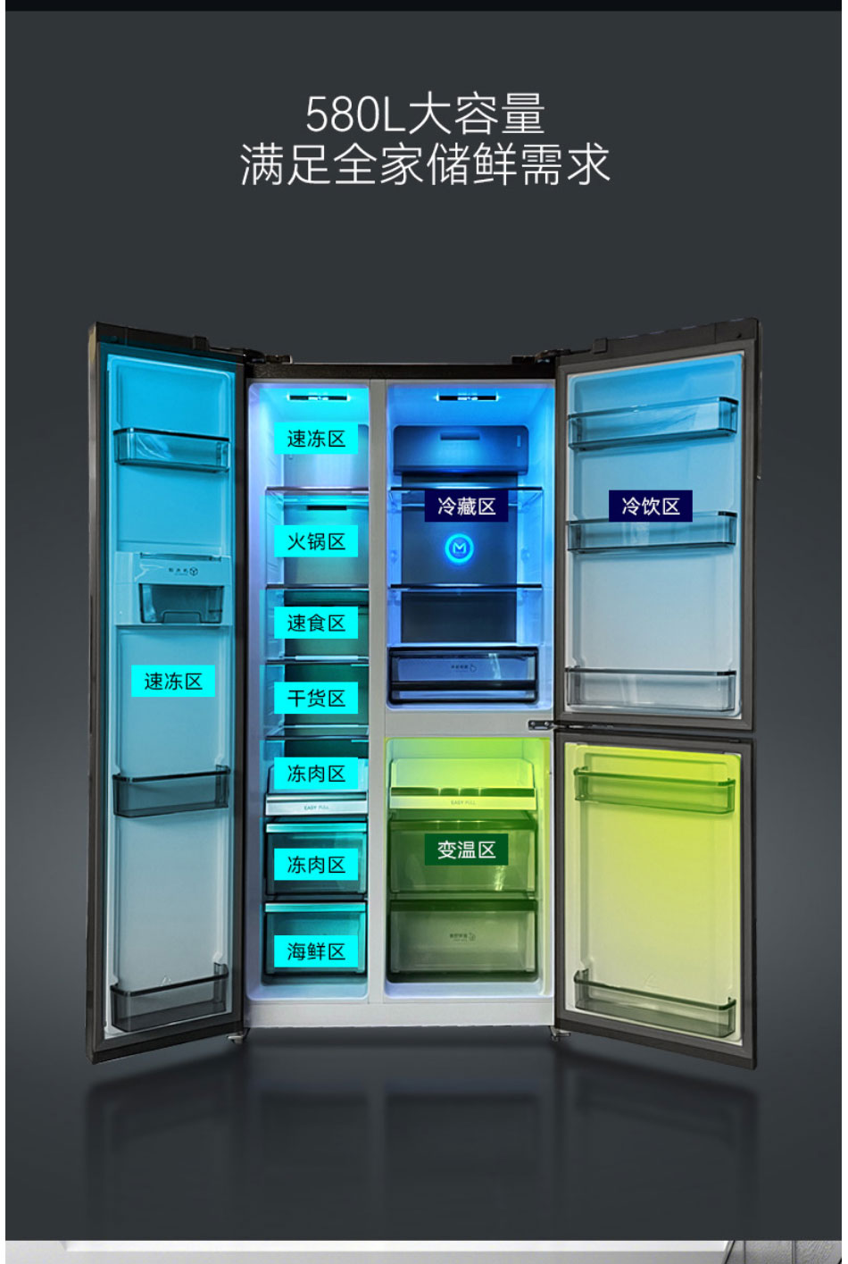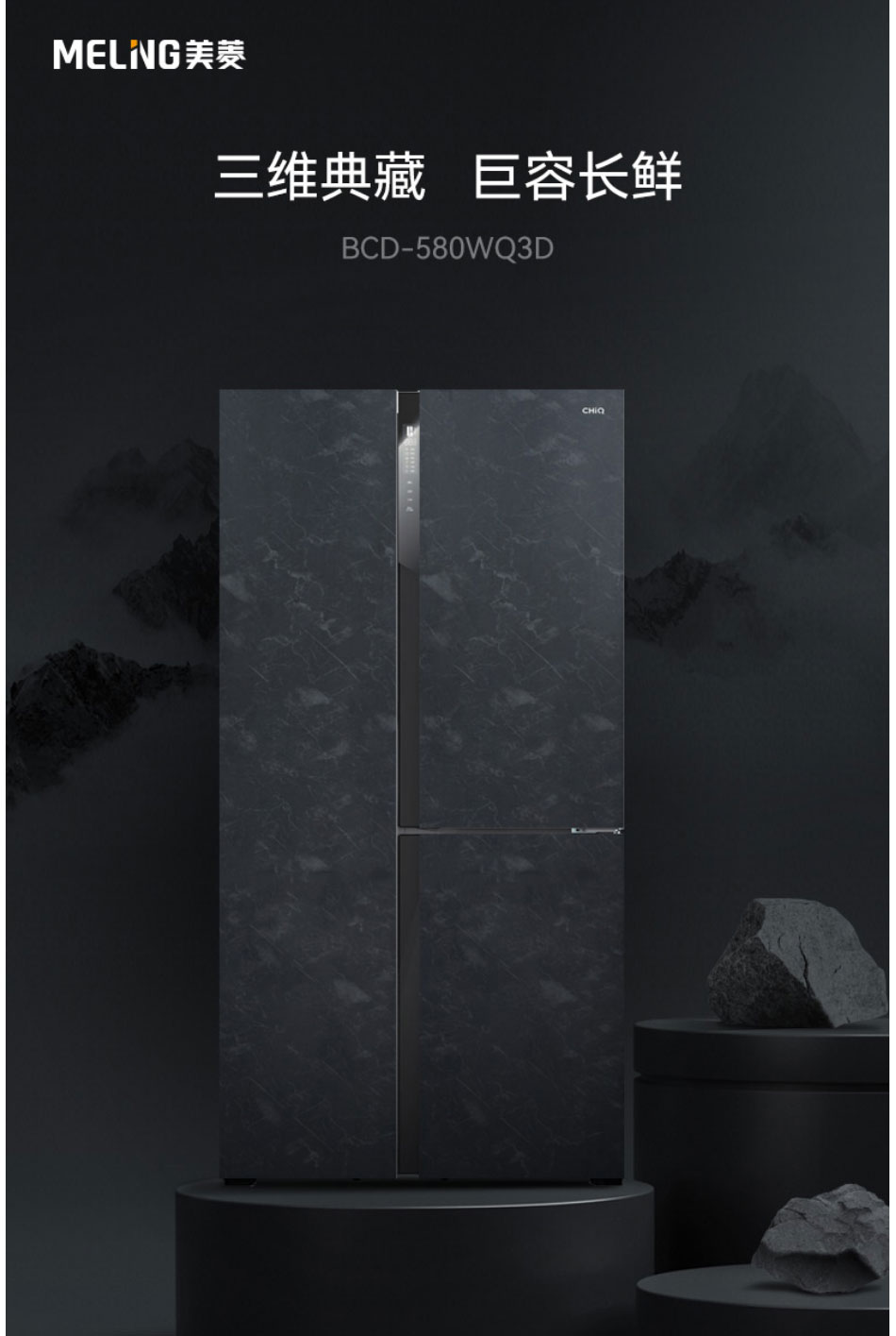 美菱(MeiLing)580升M鲜生 T型对开门冰箱 BCD-580WQ3D【云母岩岩板】