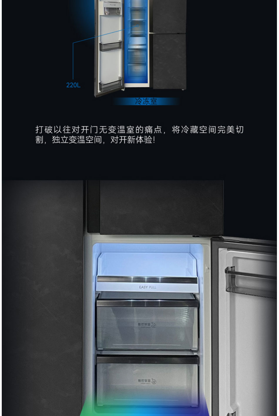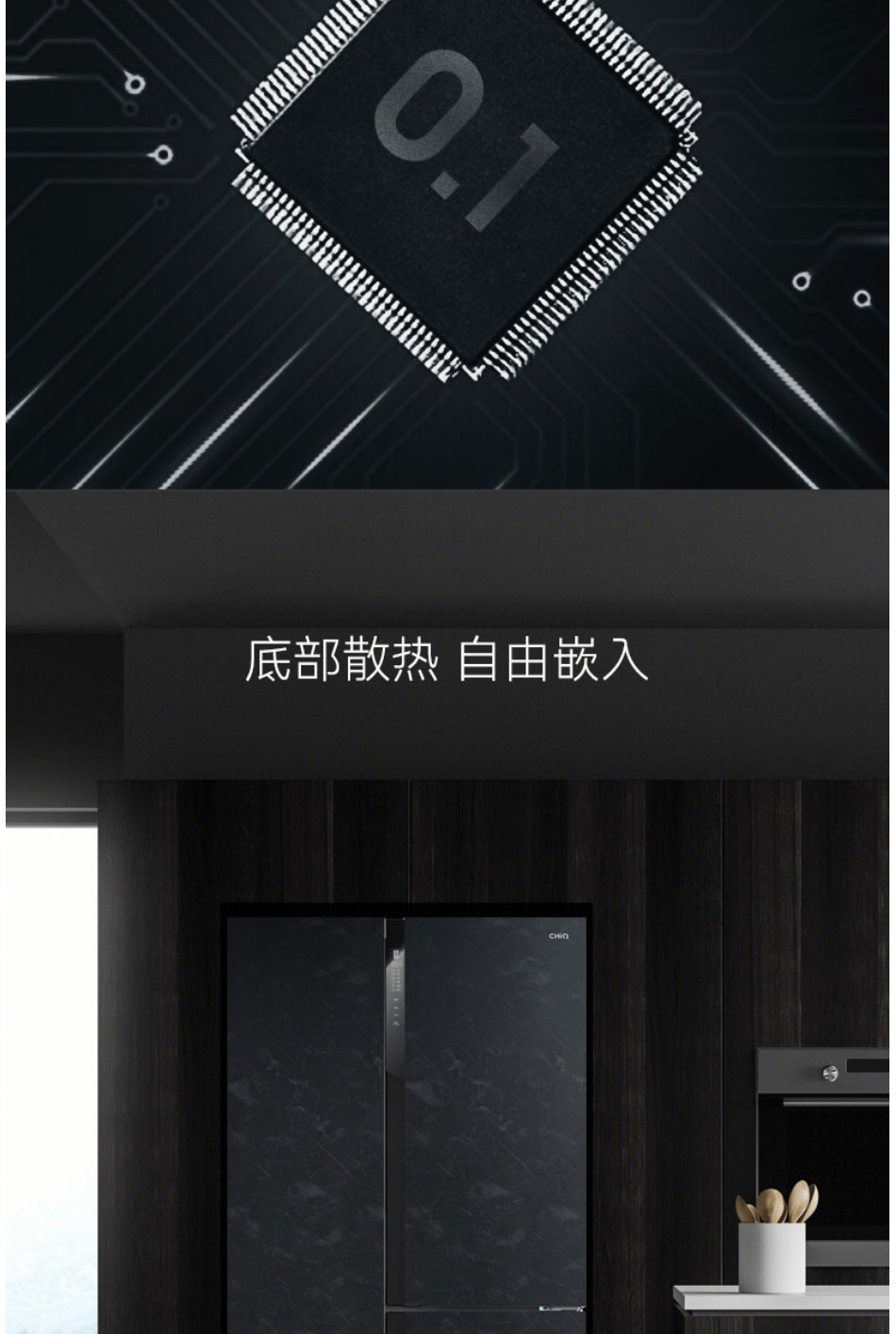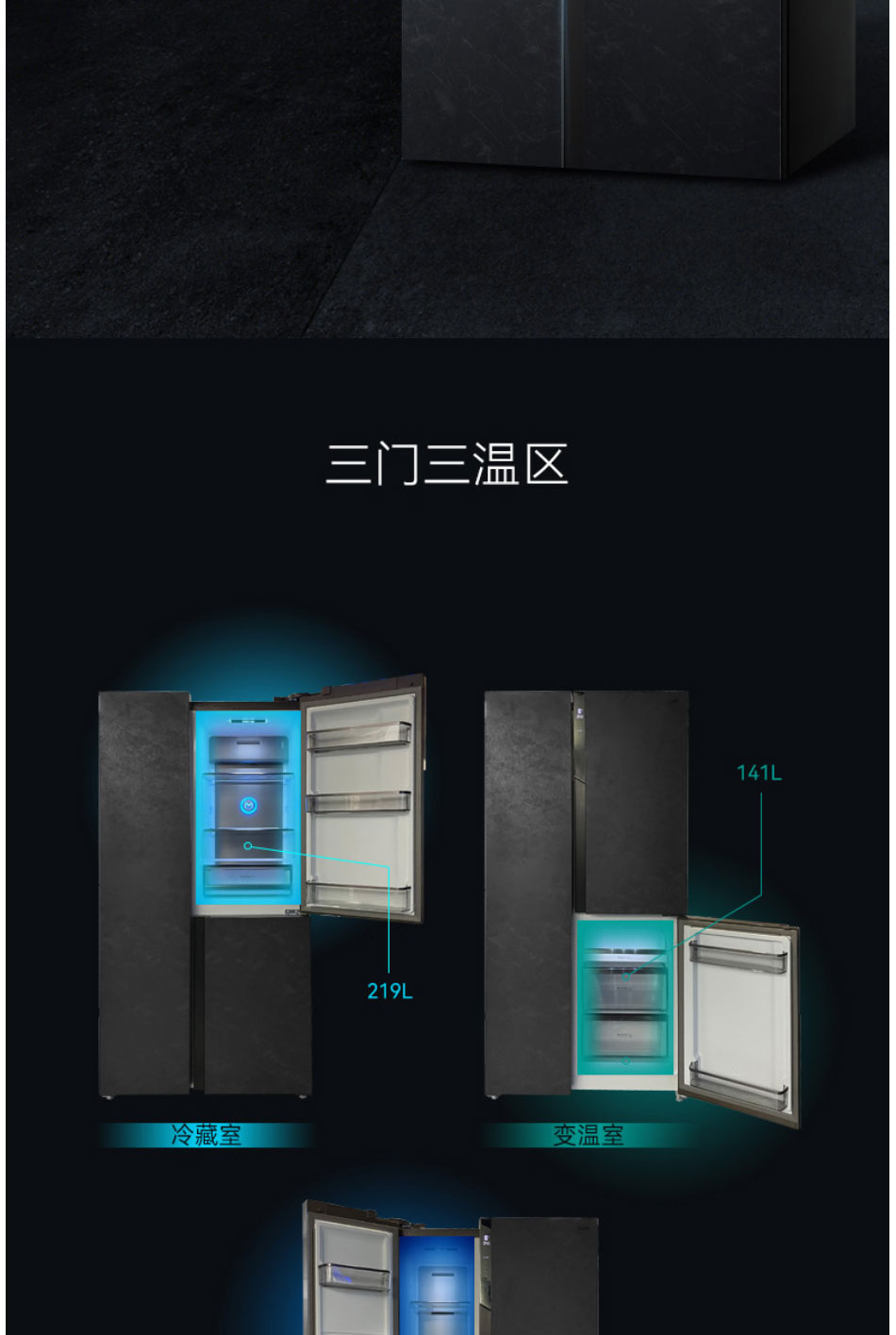 美菱(MeiLing)580升M鲜生 T型对开门冰箱 BCD-580WQ3D【云母岩岩板】