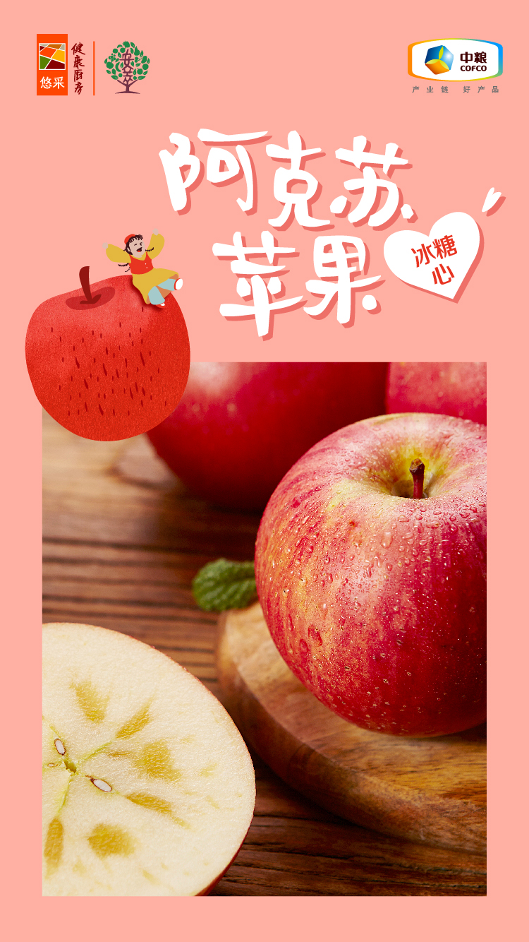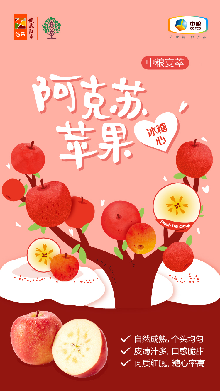 中粮安萃 新疆阿克苏红富士苹果3.5Kg12粒装(单果直径86-92mm)