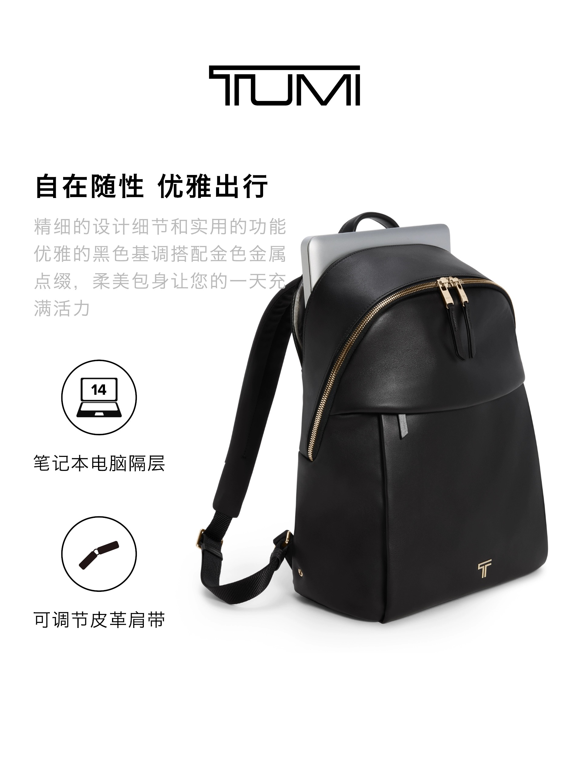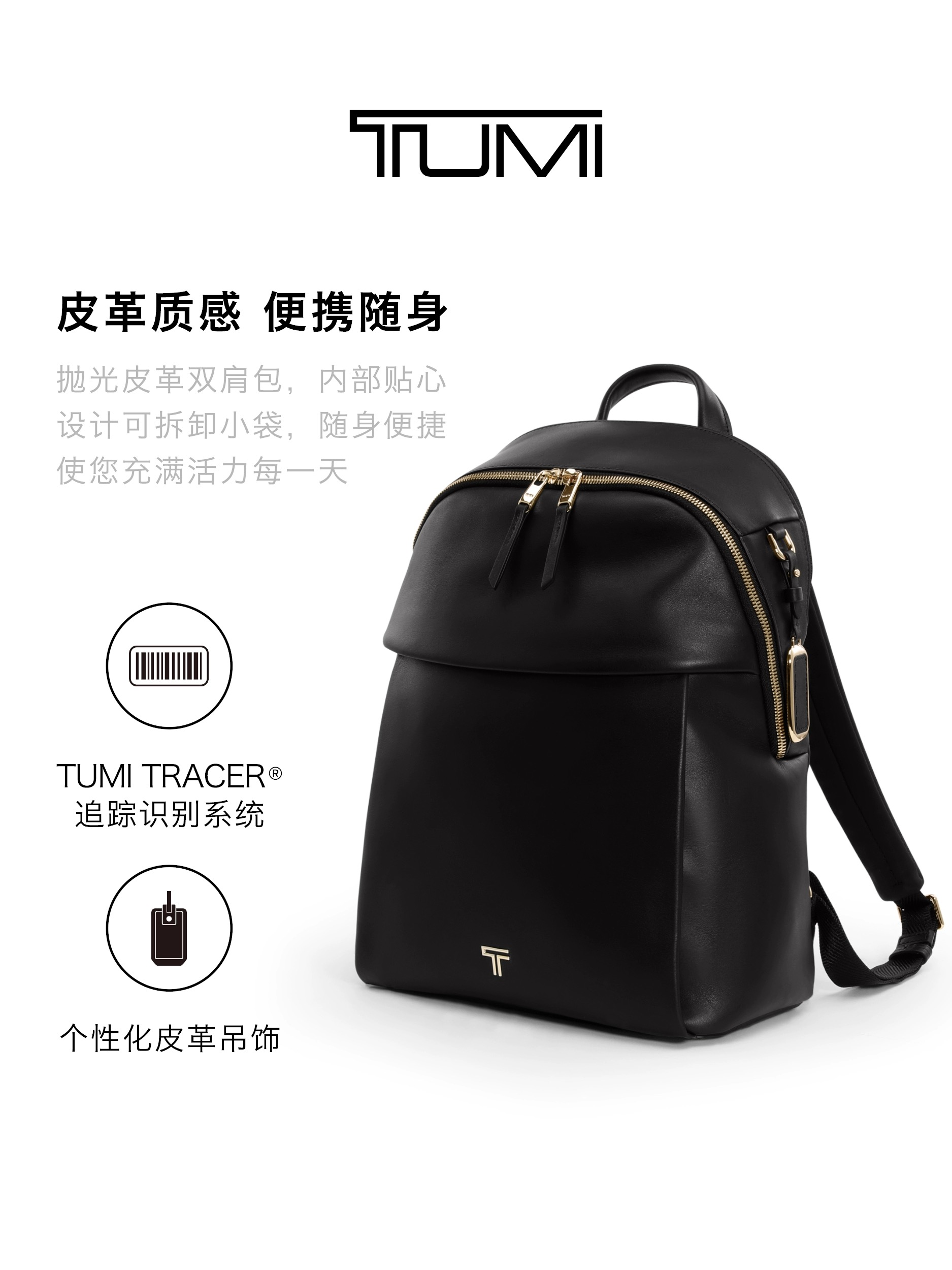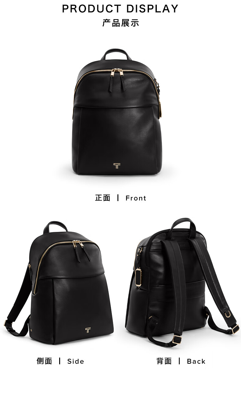 TUMI/途明女士双肩包Voyageur皮质商务纯色简约双肩 黑色/浅金色/0196671DLGL 产品名称:Holland双肩包
