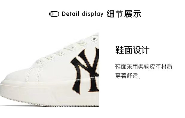 MLB女鞋新款男女板鞋情侣同款大NY学长小白鞋厚底增高百搭运动鞋 3ASXXA11N