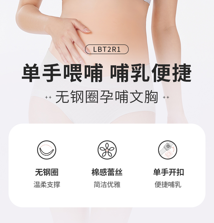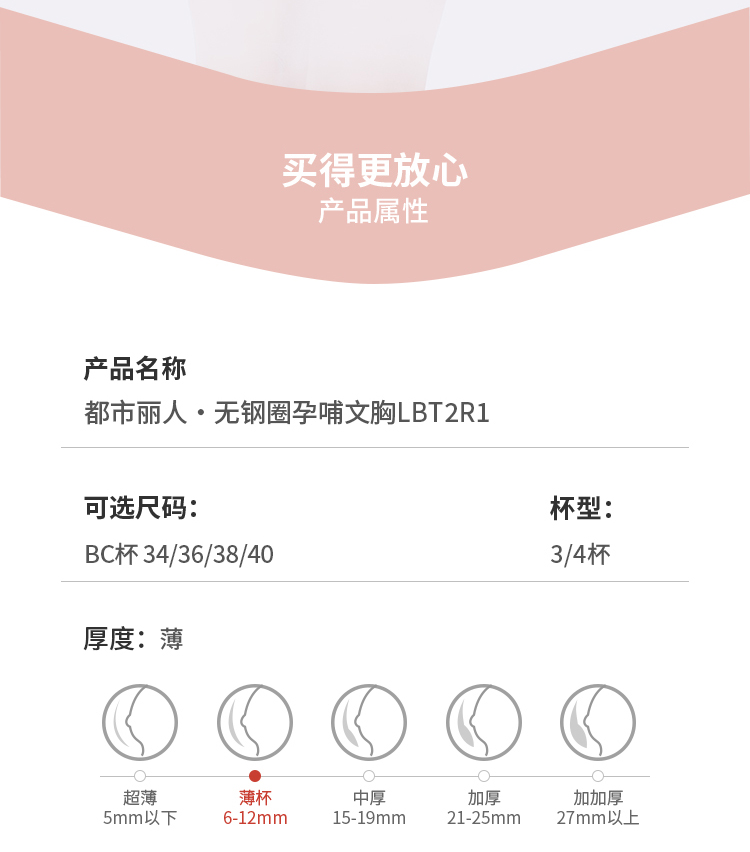 都市丽人内衣快乐妈咪孕哺文胸锁边蕾丝BC:薄文胸3/4杯三排扣无钢圈LBT2R1