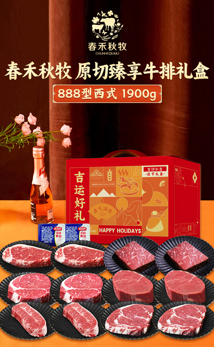 春禾秋牧原切臻享牛排礼盒1900g(888型西式)顺丰冷运到家
