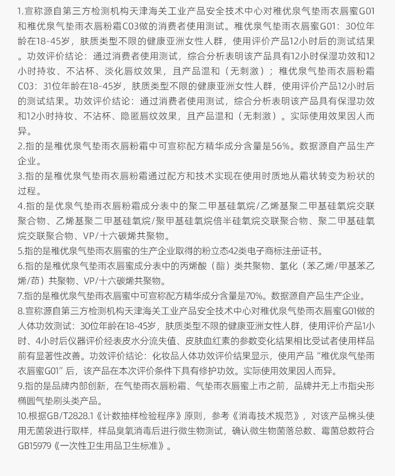 稚优泉气垫雨衣唇蜜/唇粉霜