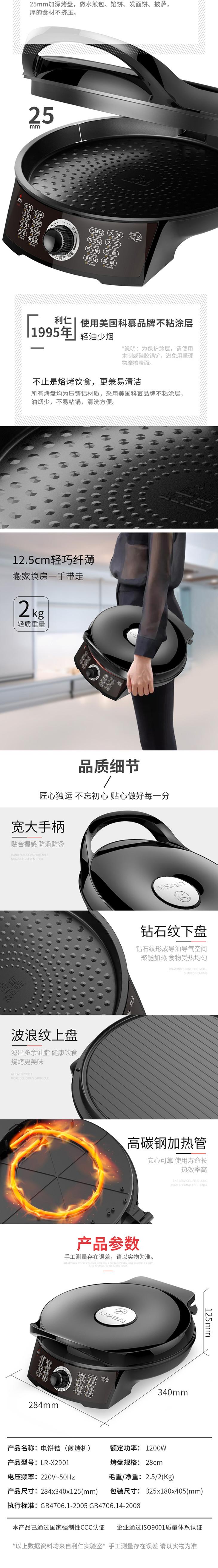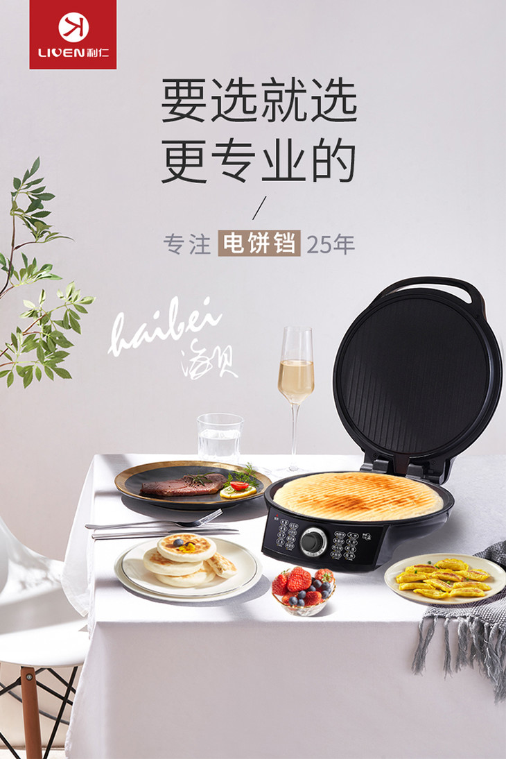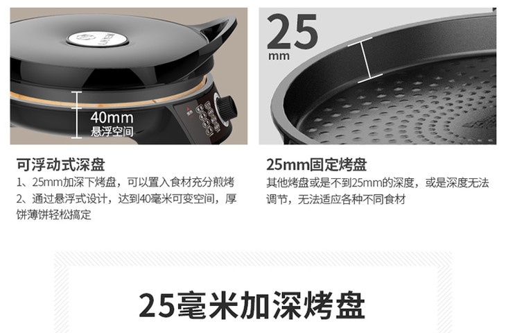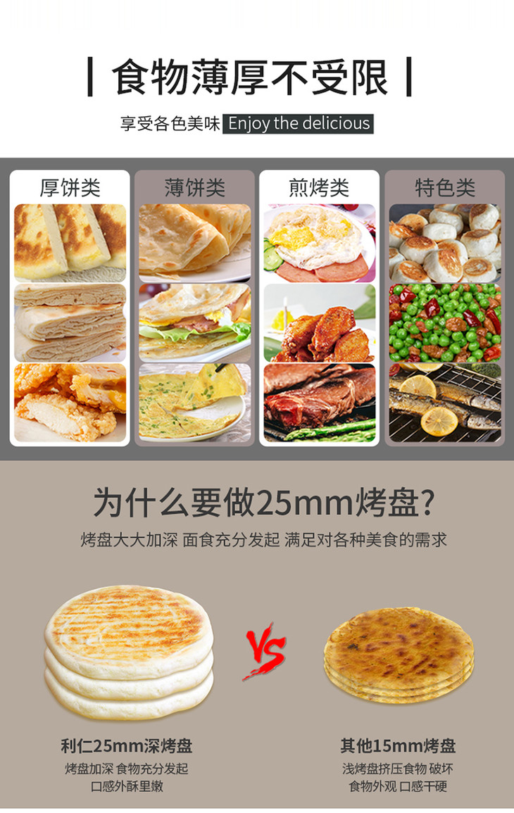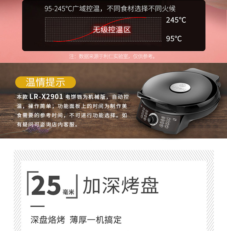 利仁(Liven)电饼铛家用加深加大电饼档双面加热煎饼锅烙饼锅三明治早餐机煎烤机25MM深盘电饼锅LR-X2901