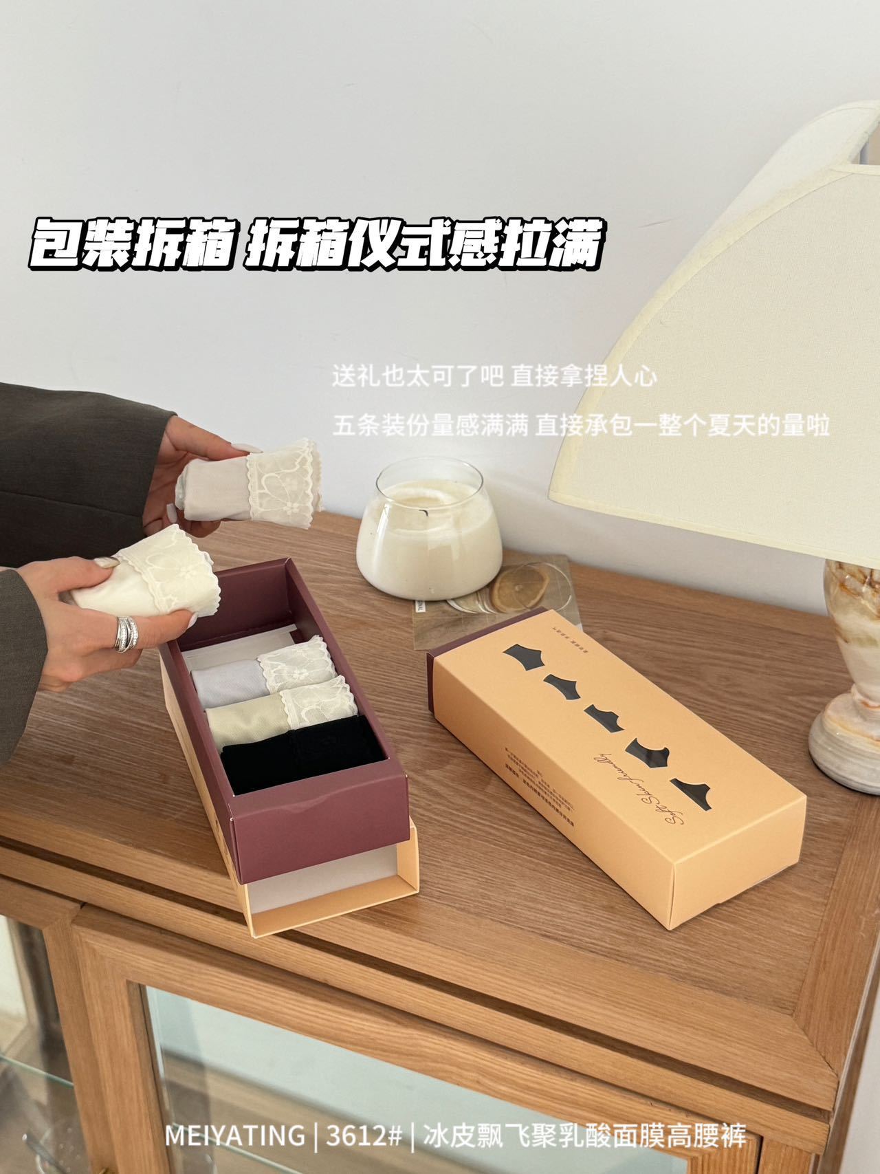 5条礼盒装冰皮飘飞聚乳酸内裤7A面膜高腰裤内裤女轻塑无痕女士三角裤