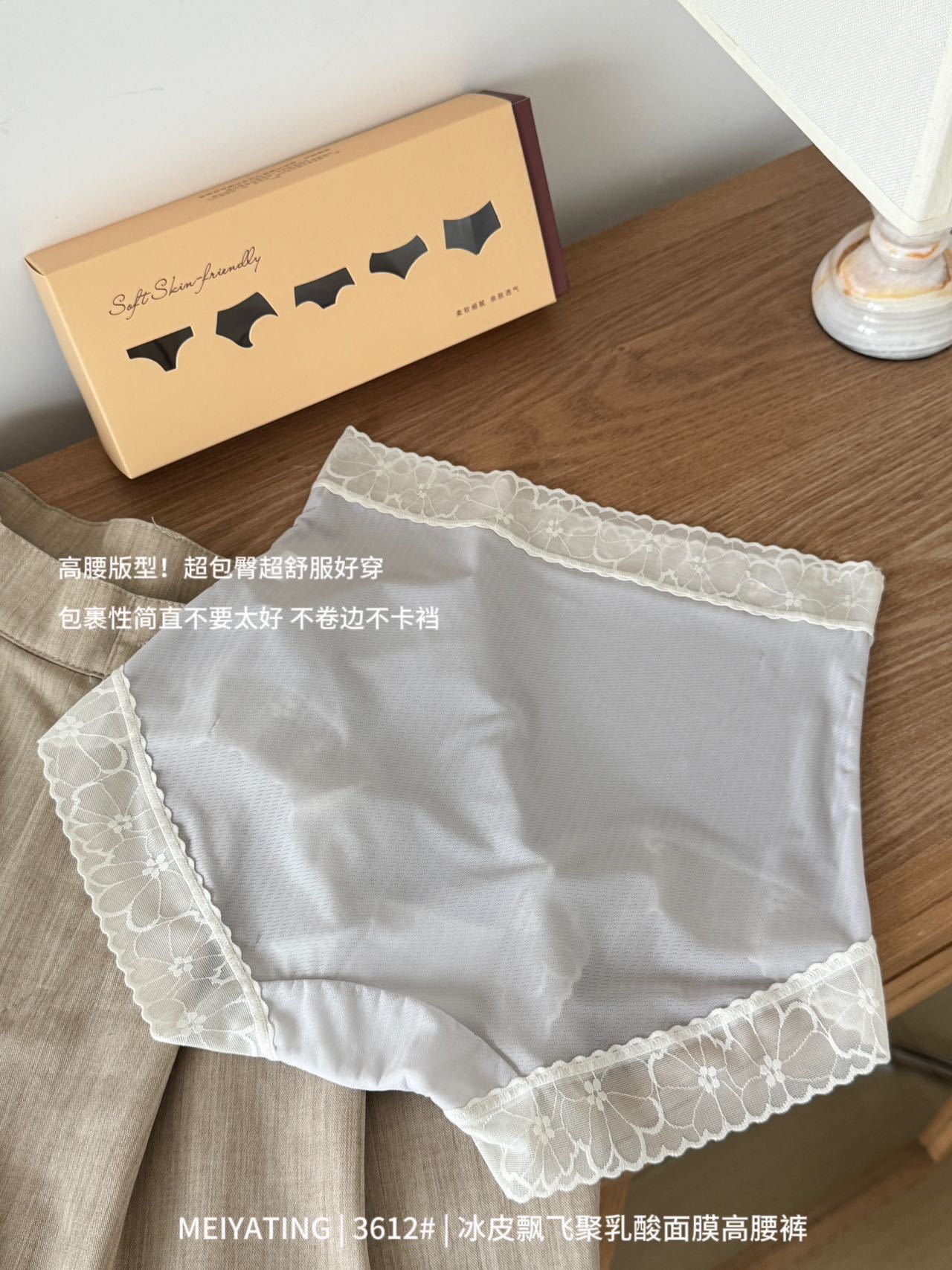 5条礼盒装冰皮飘飞聚乳酸内裤7A面膜高腰裤内裤女轻塑无痕女士三角裤 商品图6