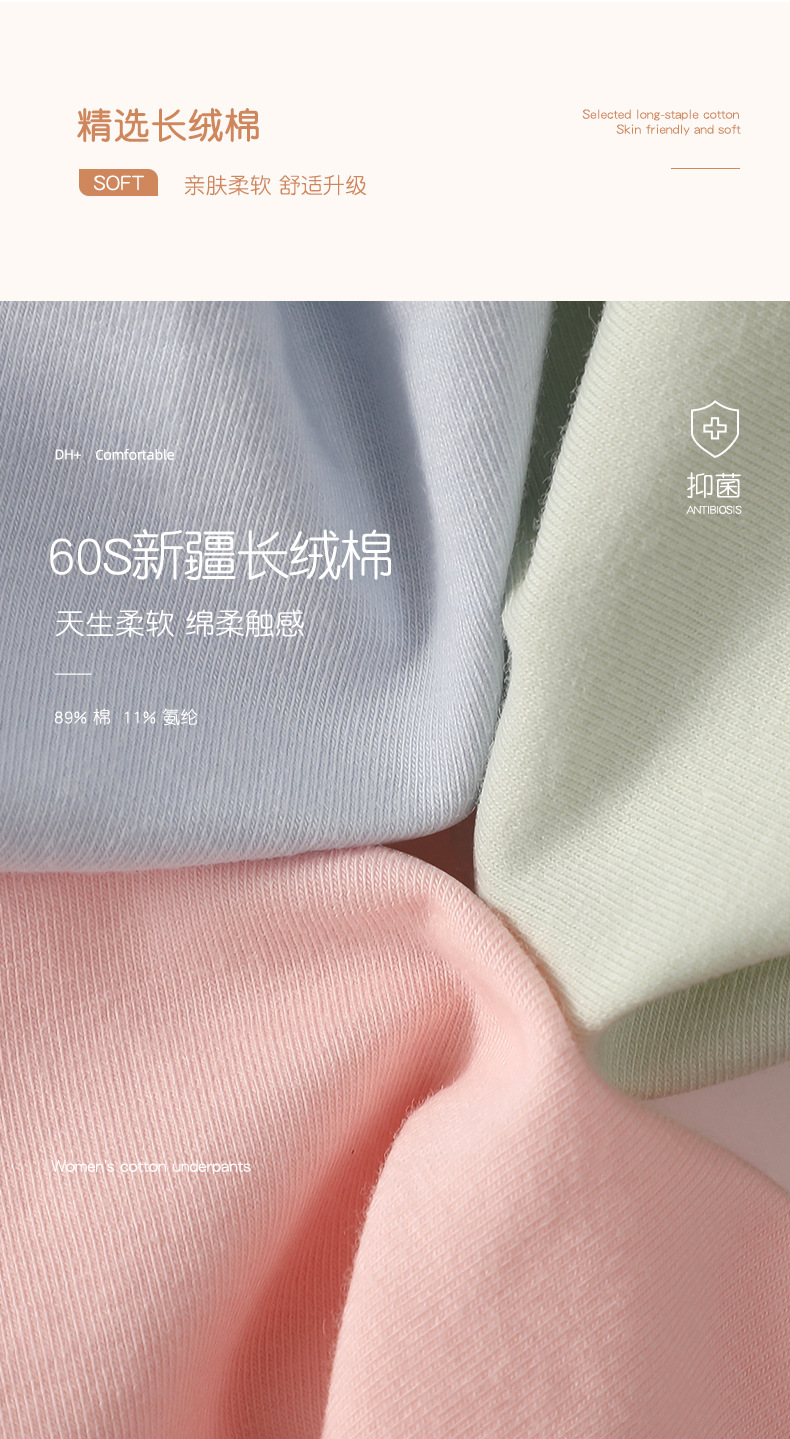 荣光精选【A类棉60支中腰女士内裤3条/5条】新疆长绒棉 蚕丝抑菌内档/全棉抑菌内档 婴儿级内衣标准 8色可选