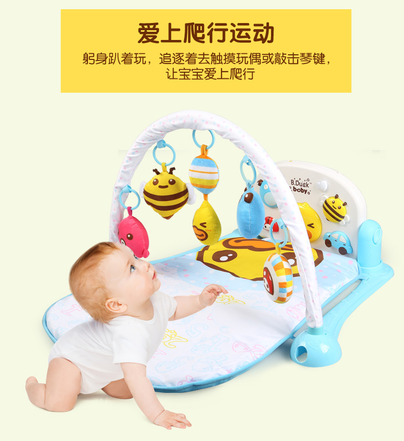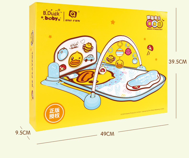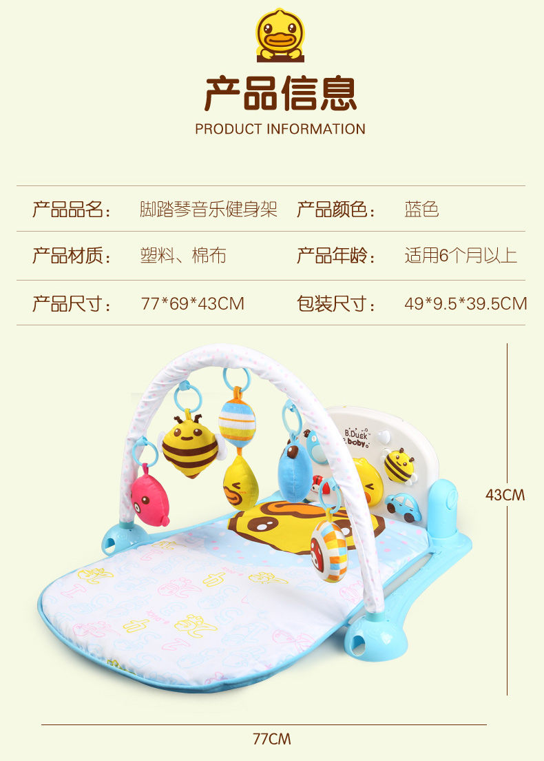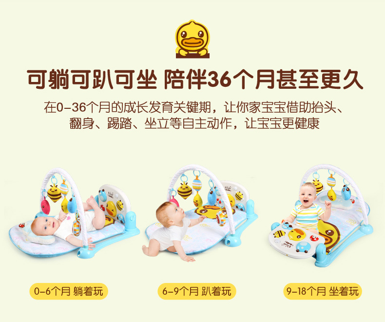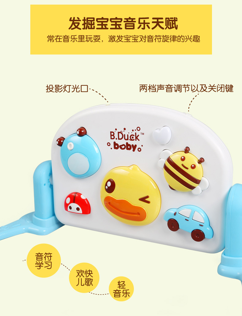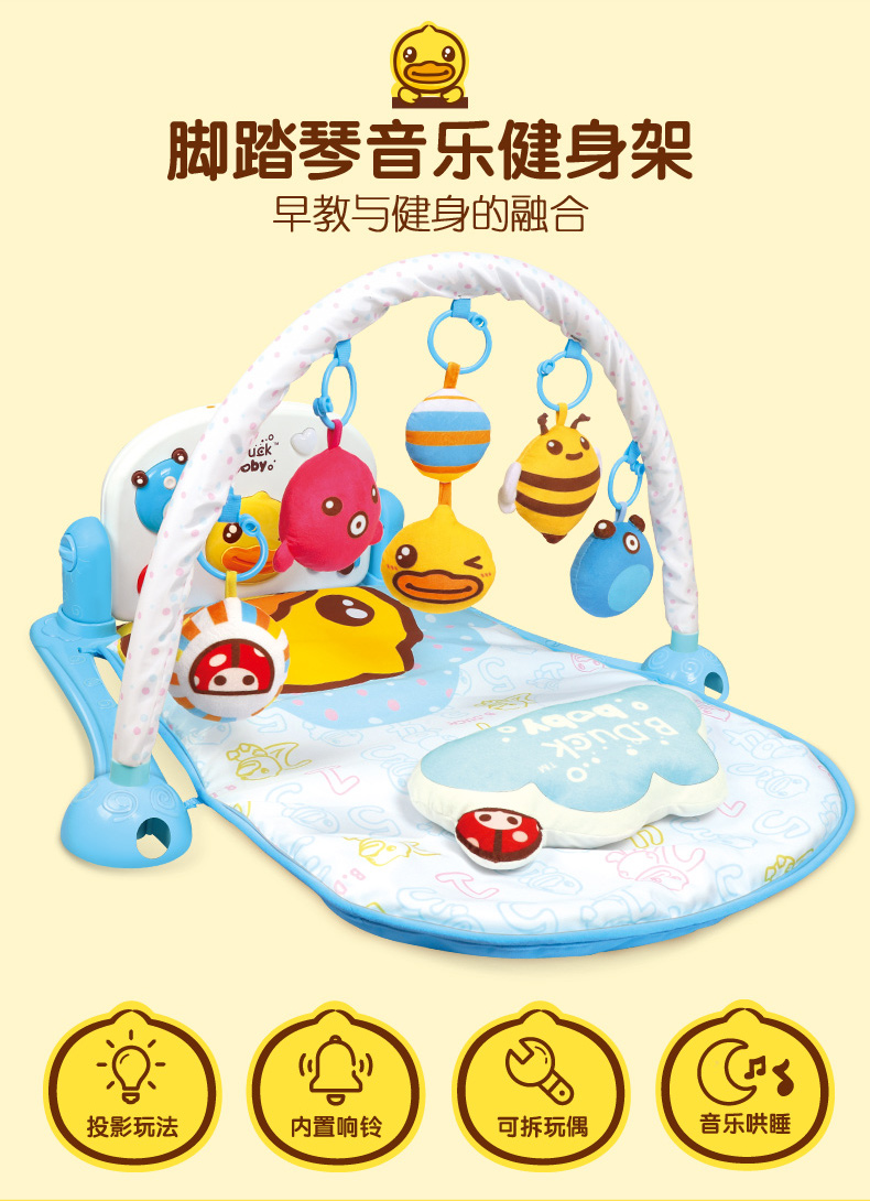 B.Duck小黄鸭脚踏钢琴健身架婴儿玩具0-1岁宝宝游戏毯周岁礼物
