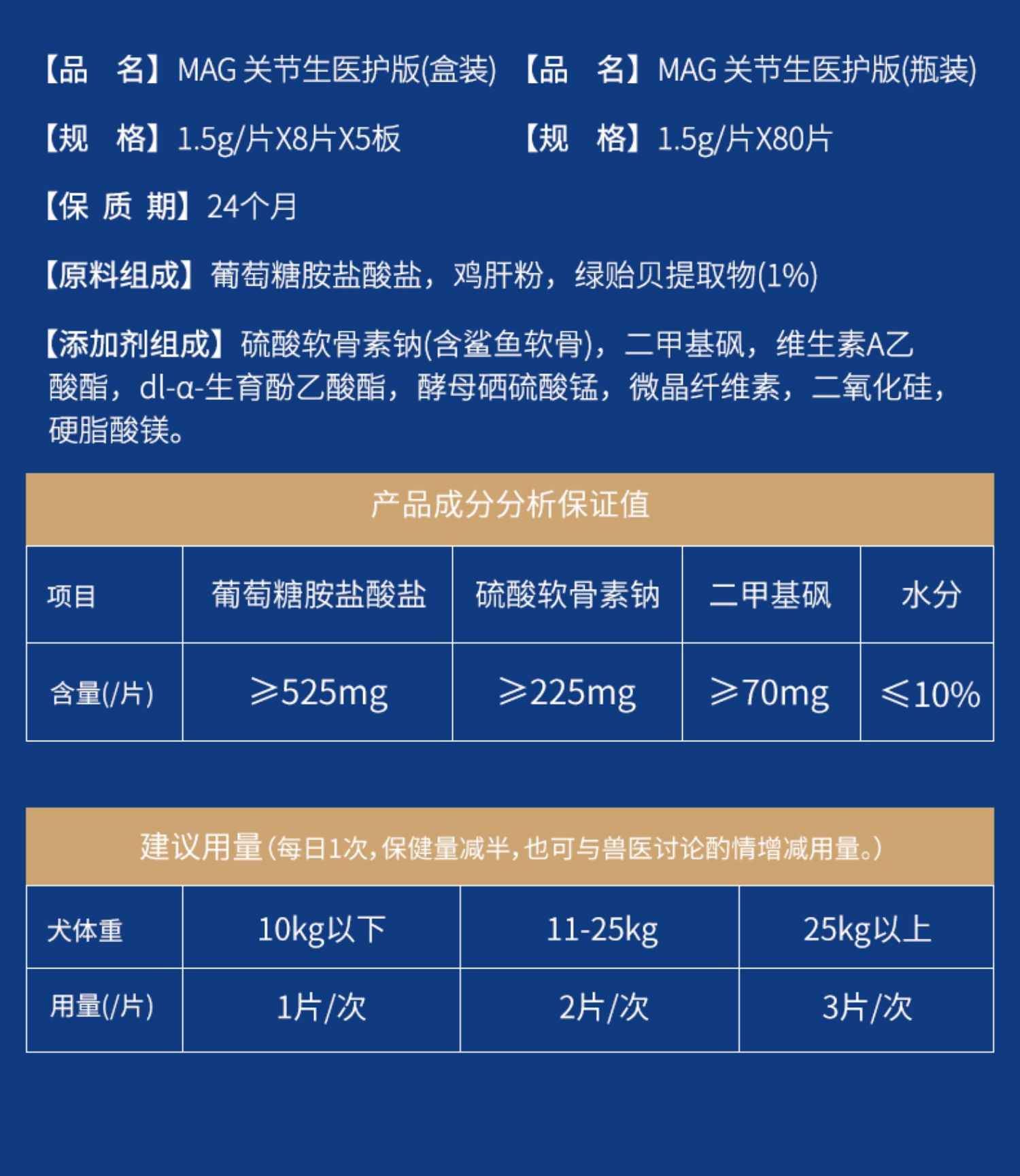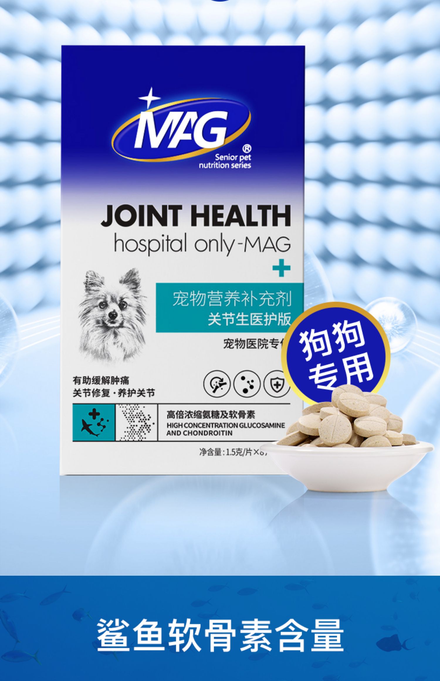 U+系列 MAG【关节生医护版】狗狗专用 鲨鱼软骨素狗狗宠物腿瘸关节生关节宝关节粉钙片补钙 40片/盒