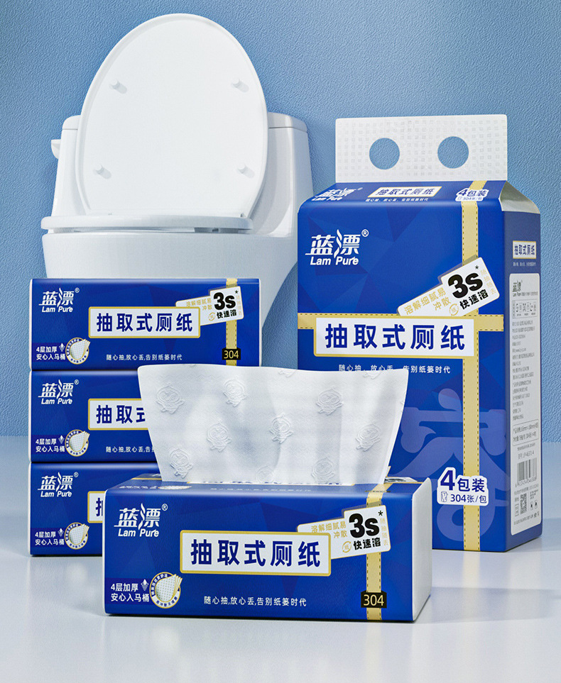 「4包装!易冲散厕纸」蓝漂新式可溶厕纸 居家日用卫生间用抽取式纸巾4包清洁工具