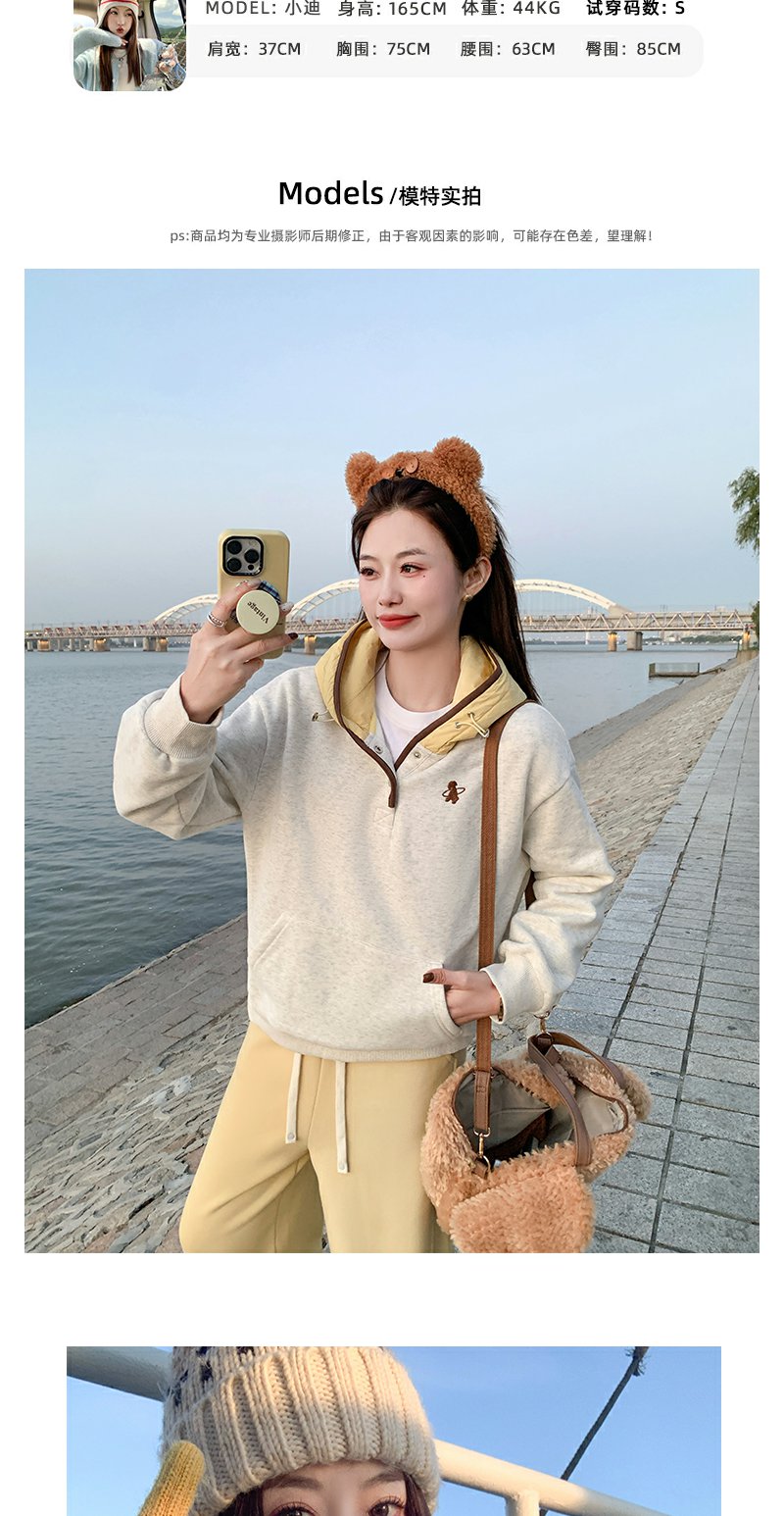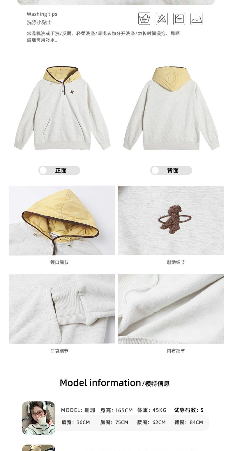 【189元任选2件】现货!黄色连帽拼接灰色卫衣