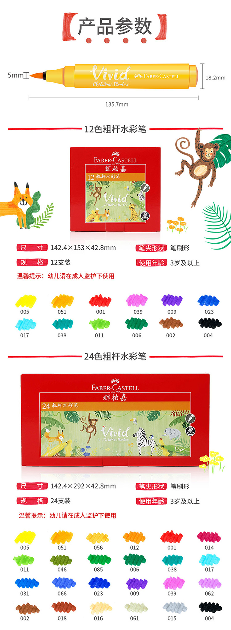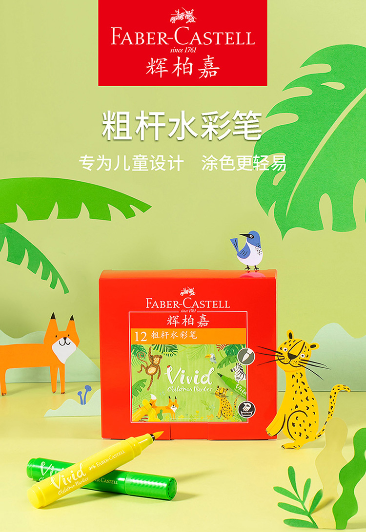 辉柏嘉O1-553312粗杆水彩笔12色纸盒装