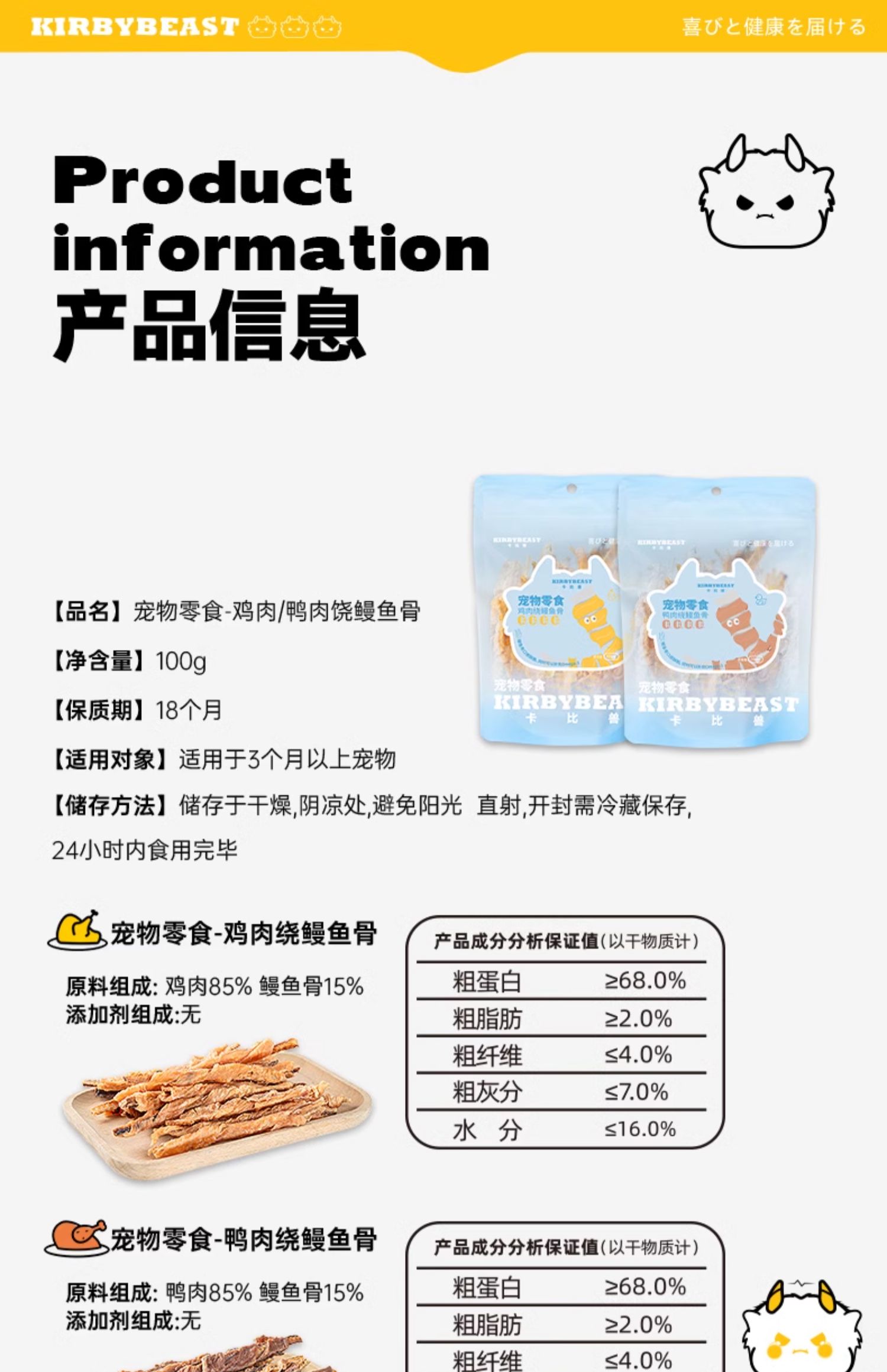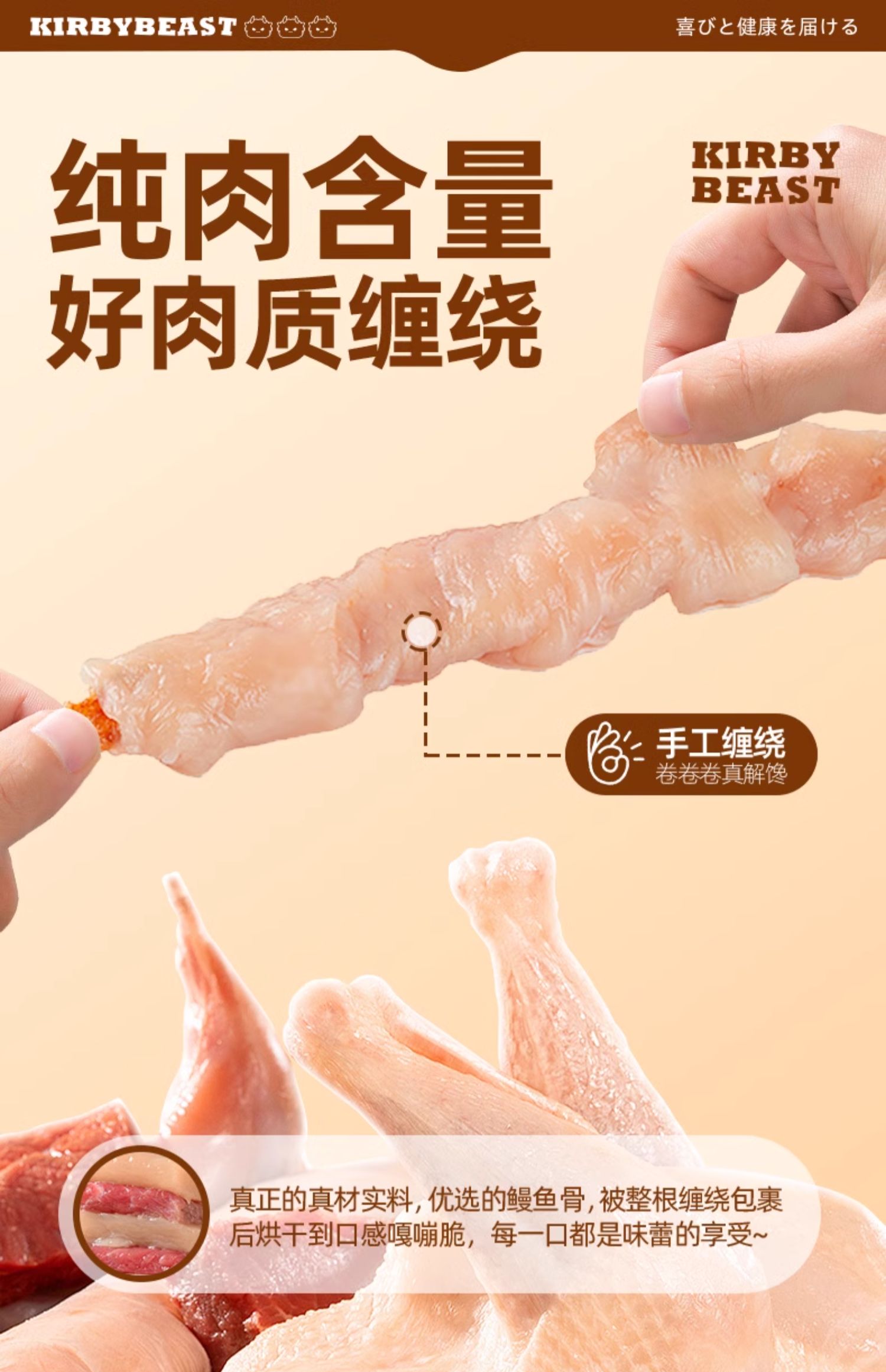 卡比兽 猫咪磨牙零食鸡胸鸭胸肉干 猫咪专用磨牙棒