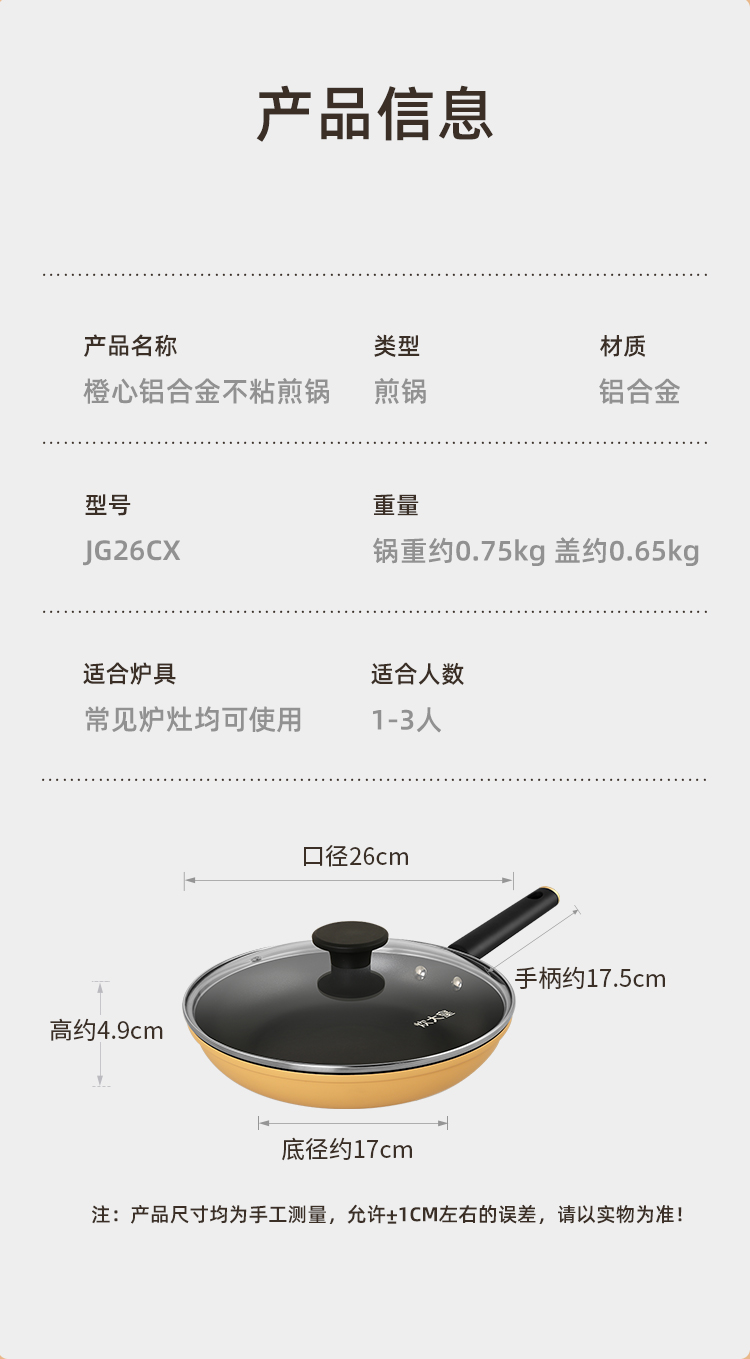 炊大皇橙心铝合金不粘锅煎锅26cmJG26CX