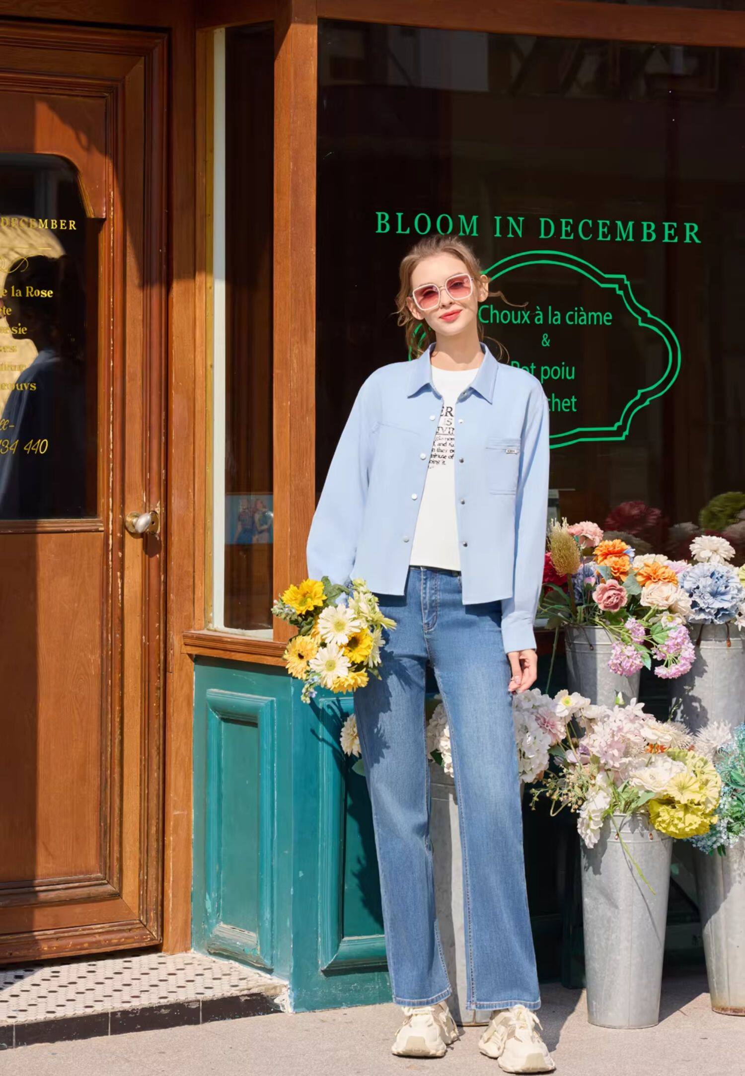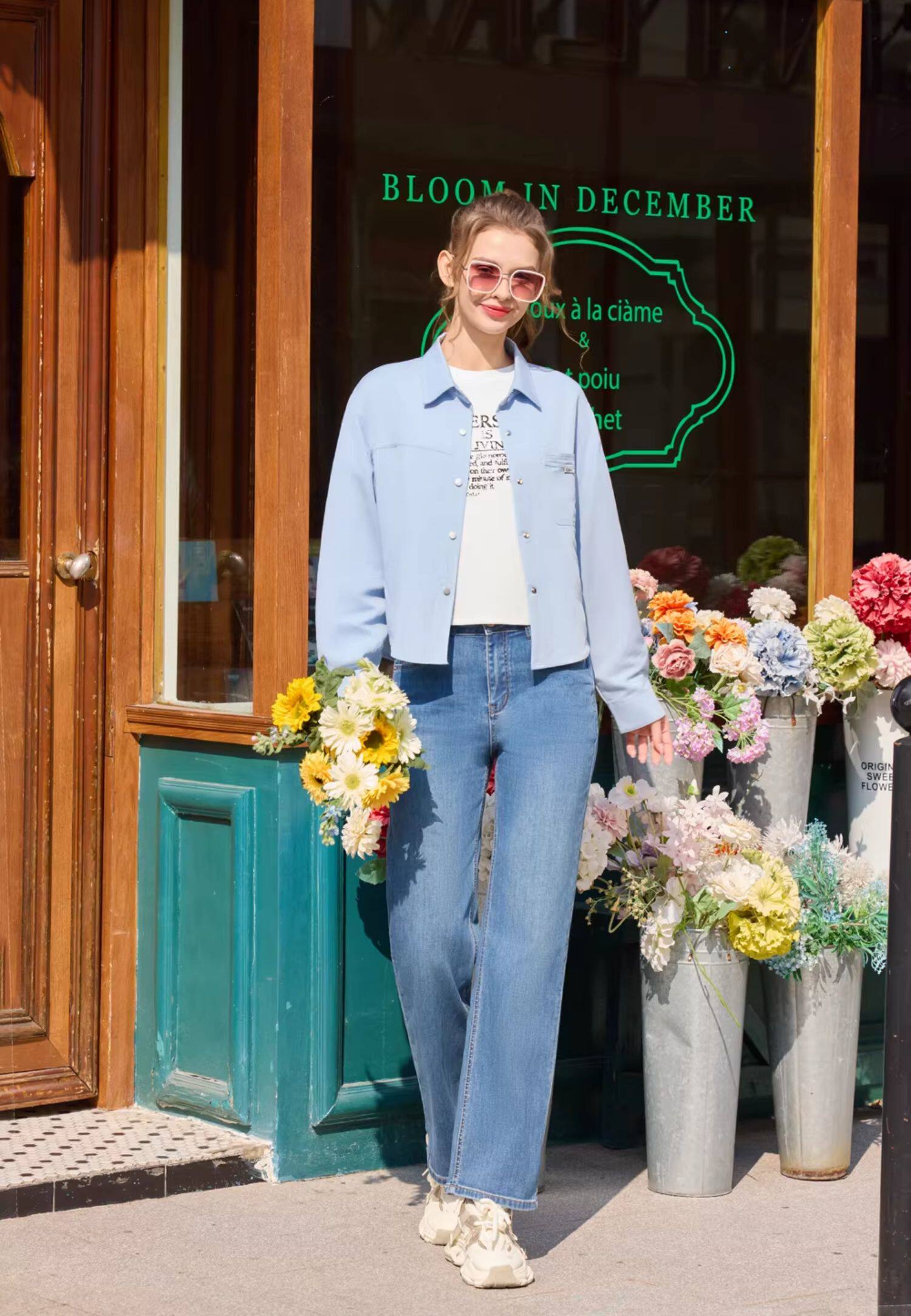 半身缘女裤 春季时尚复古宽松修腿型裤腿牛仔裤261102U10120191