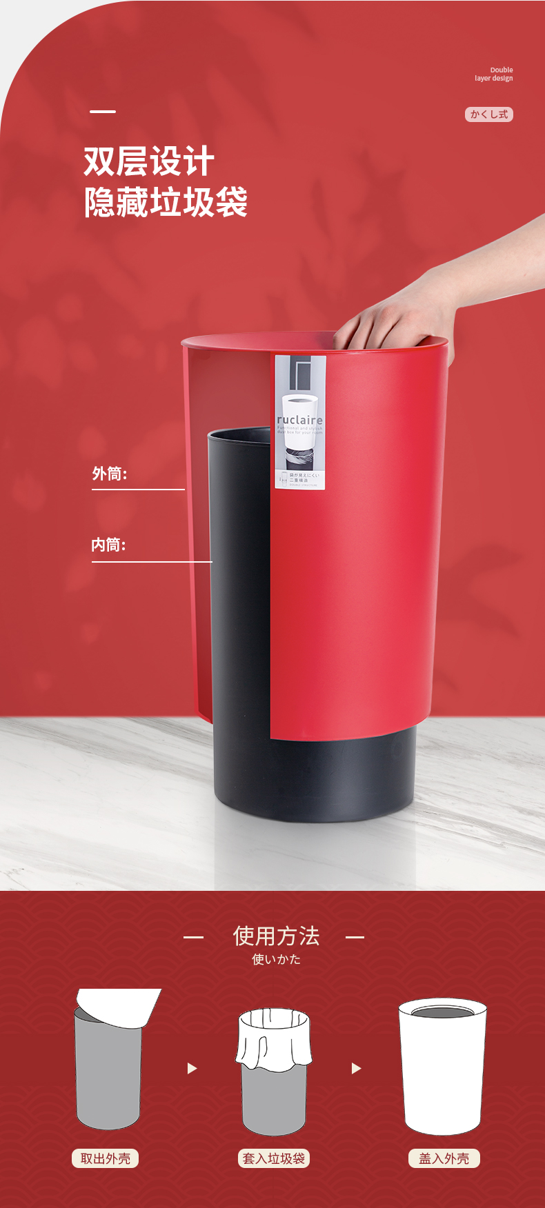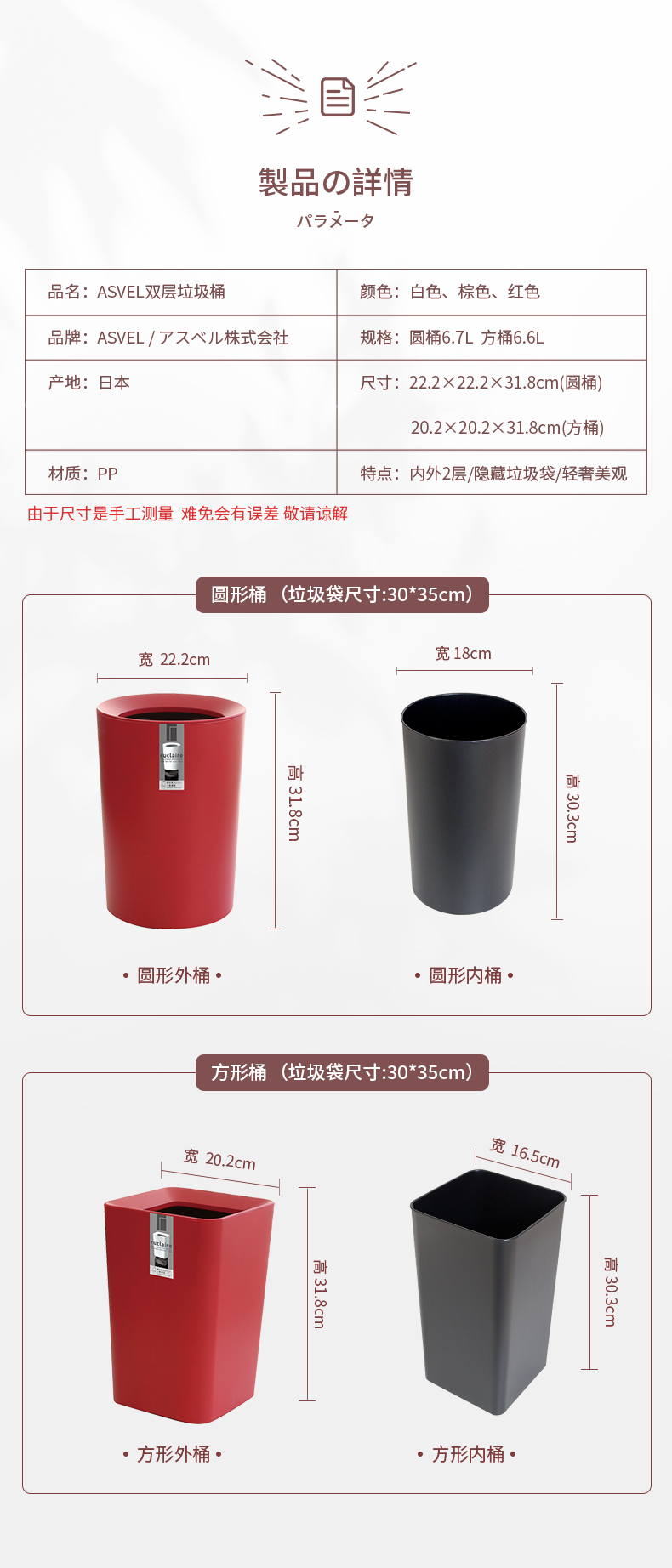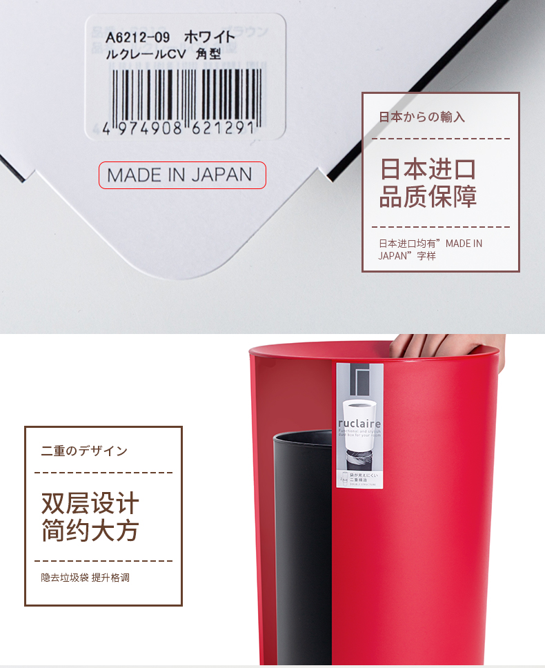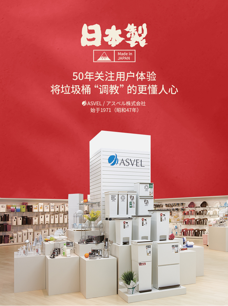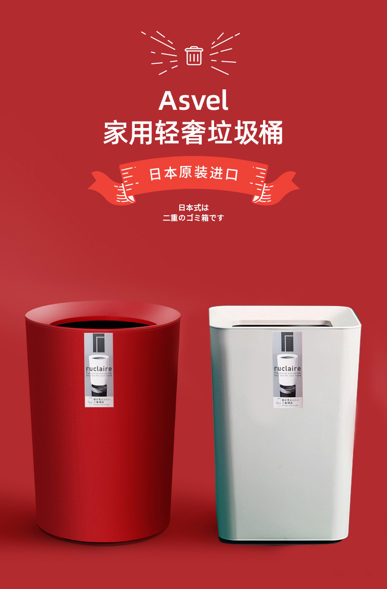 日本Asvel塑料垃圾桶6.7L(圆白)