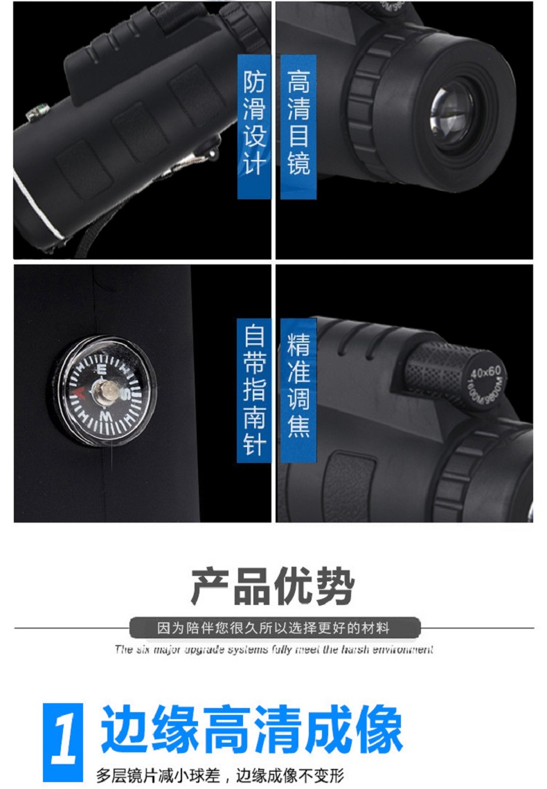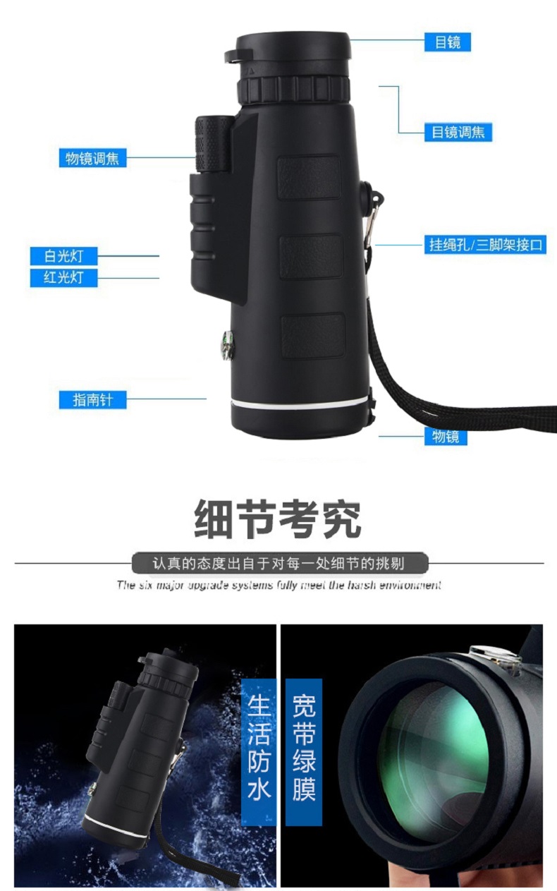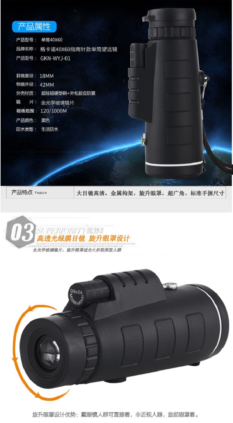 格卡诺40X60指南针款单筒望远镜