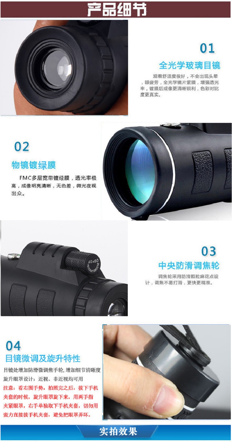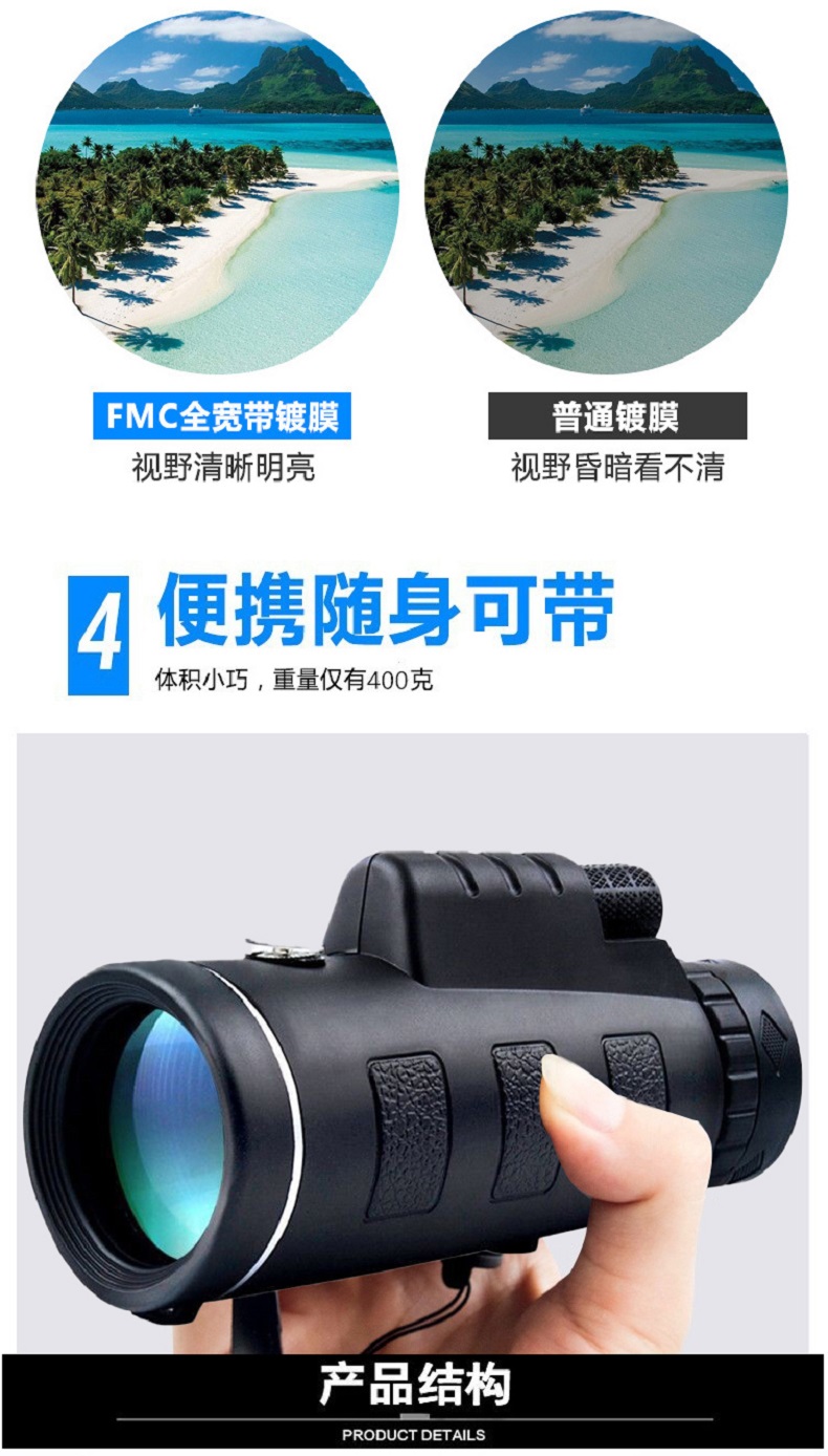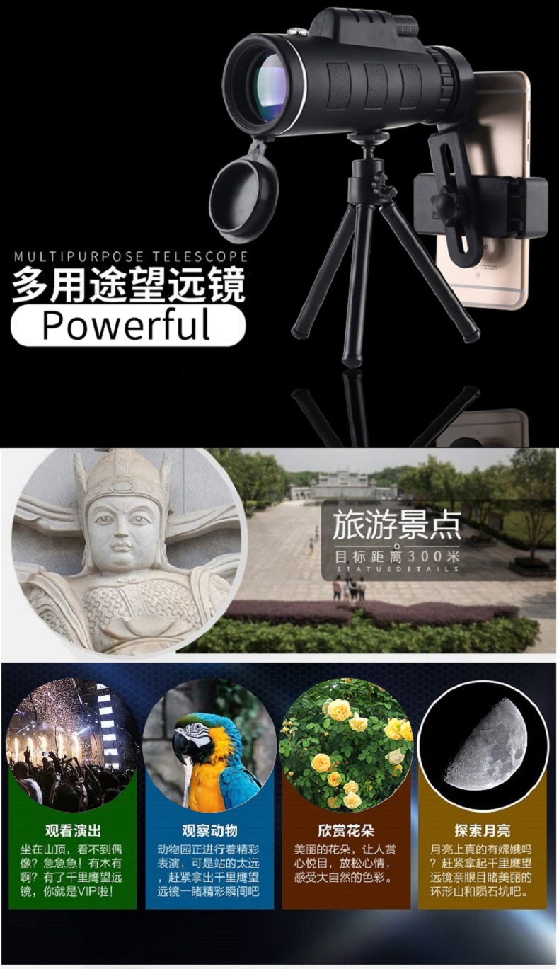 格卡诺40X60指南针款单筒望远镜