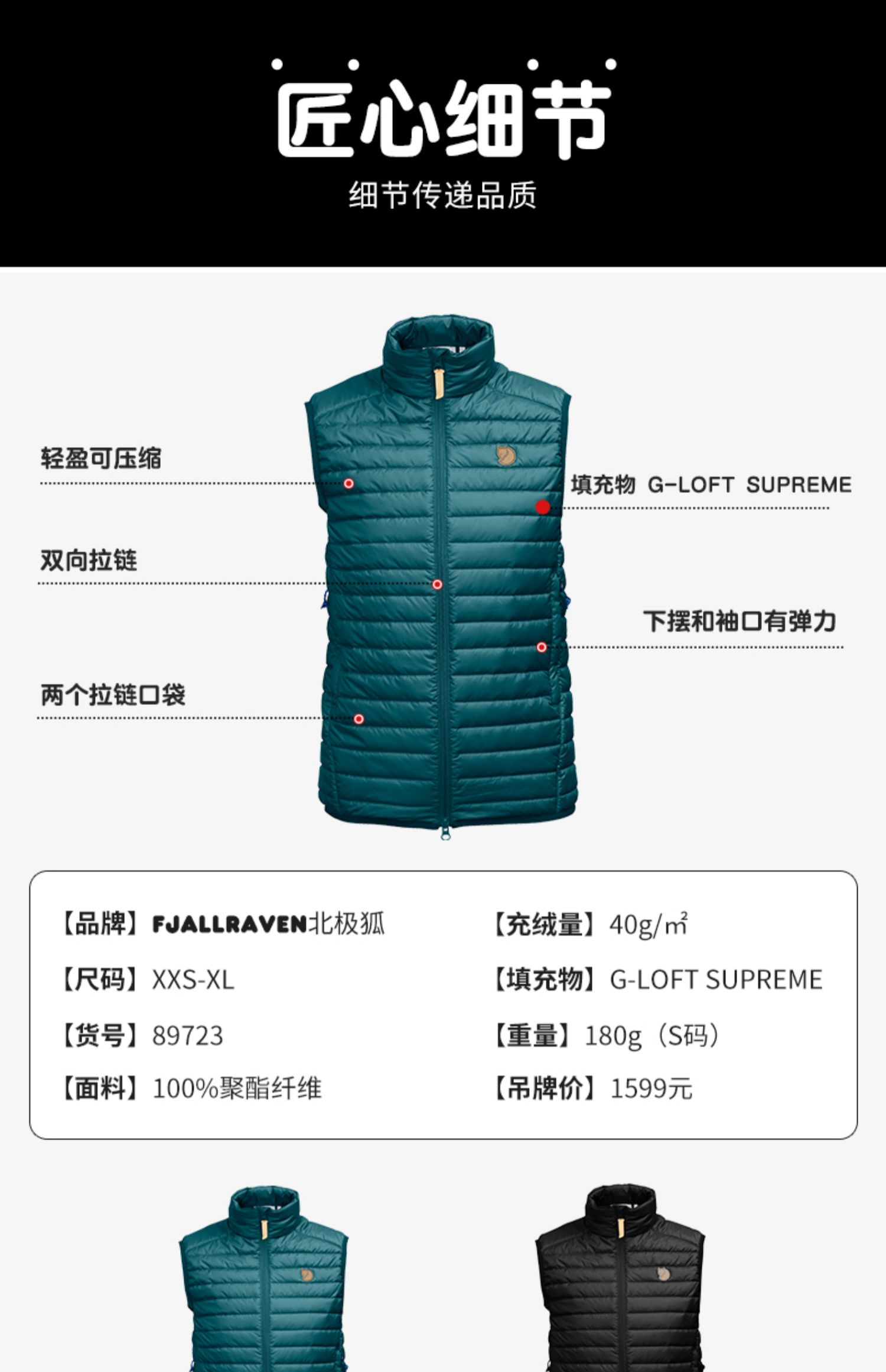 Fjallraven/北极狐保暖户外女士外套轻薄保暖背心马甲89723