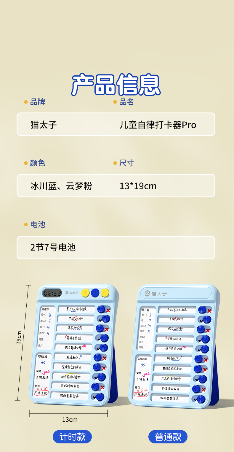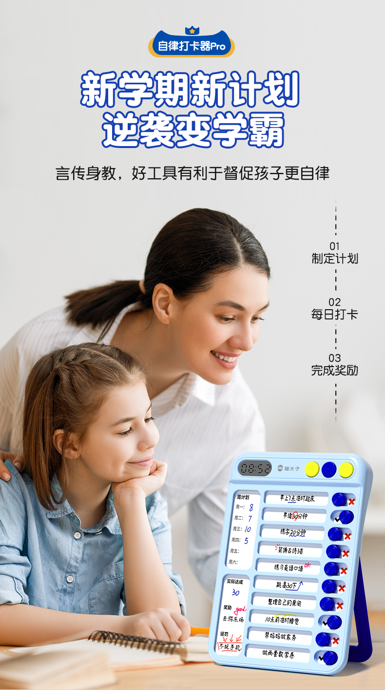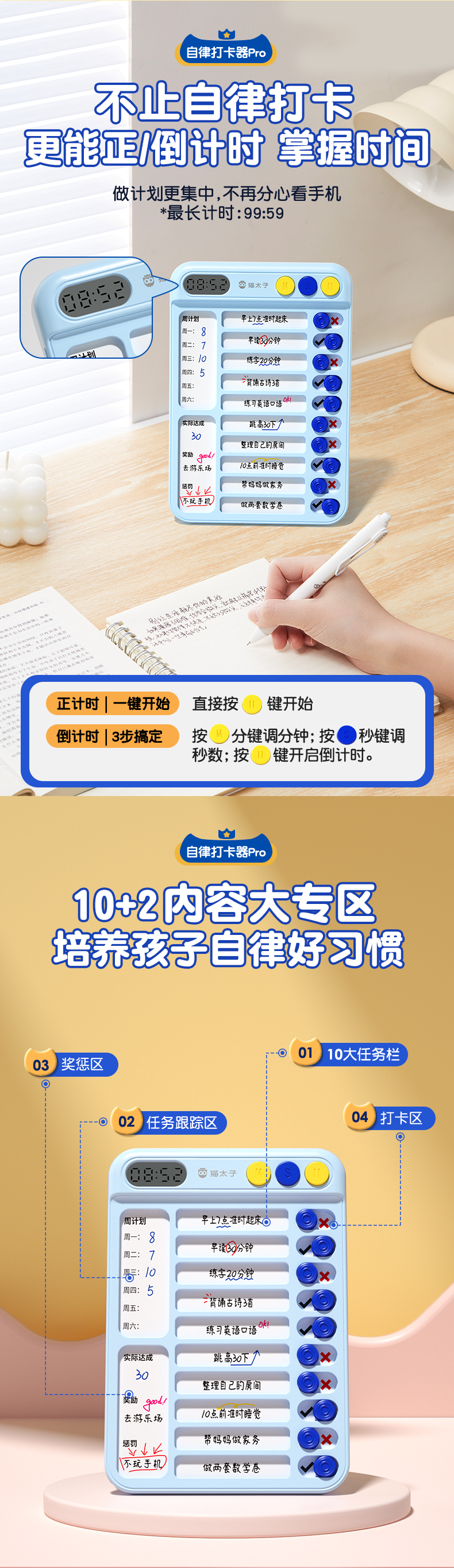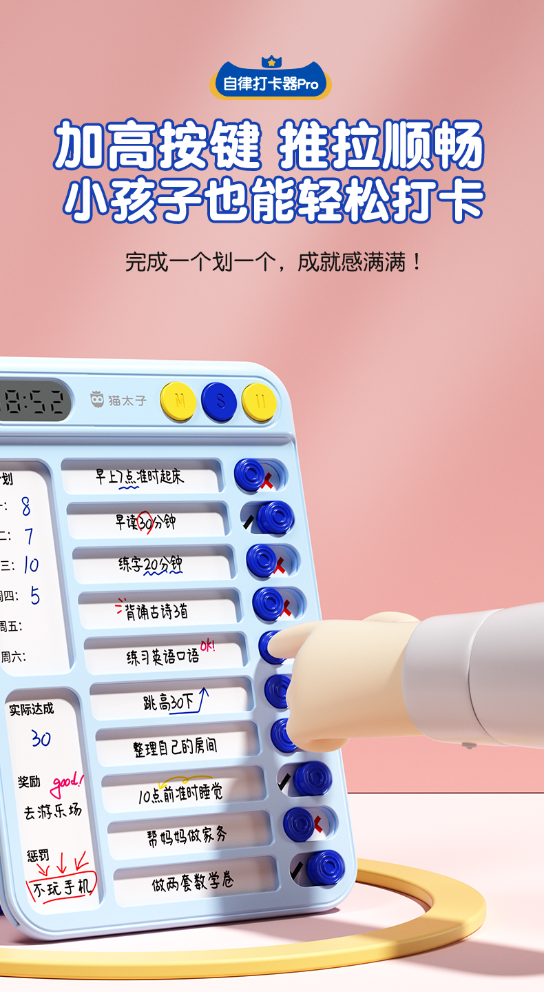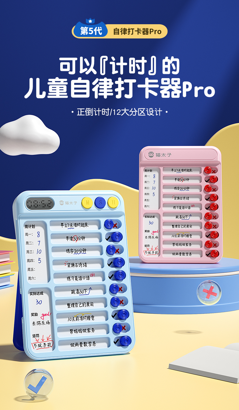 猫太子电子款自律打卡器小学生自律神器寒暑假学习计划表儿童时间管理器好习惯养成任务规划卡片学习用品记录计划本