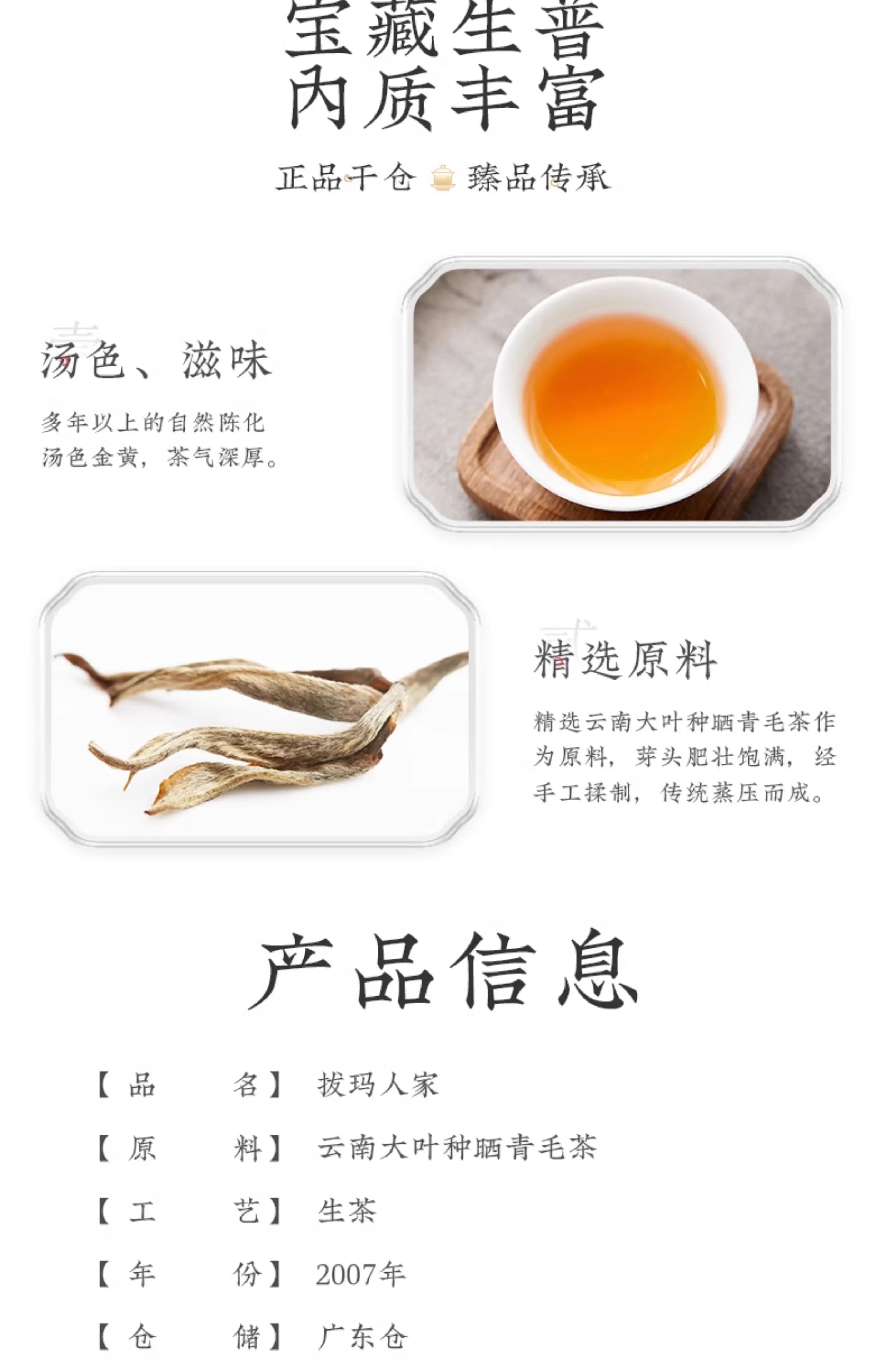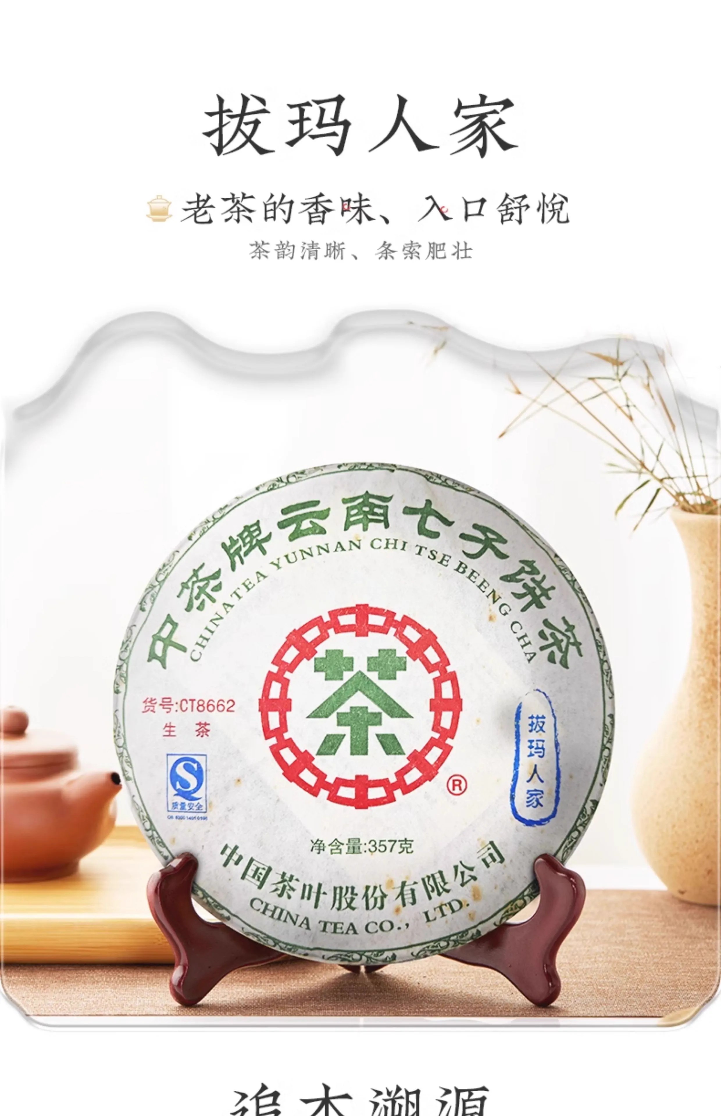 中粮-中茶2007年拔玛人家CT8662十年陈以上普洱生茶357g/干仓直发