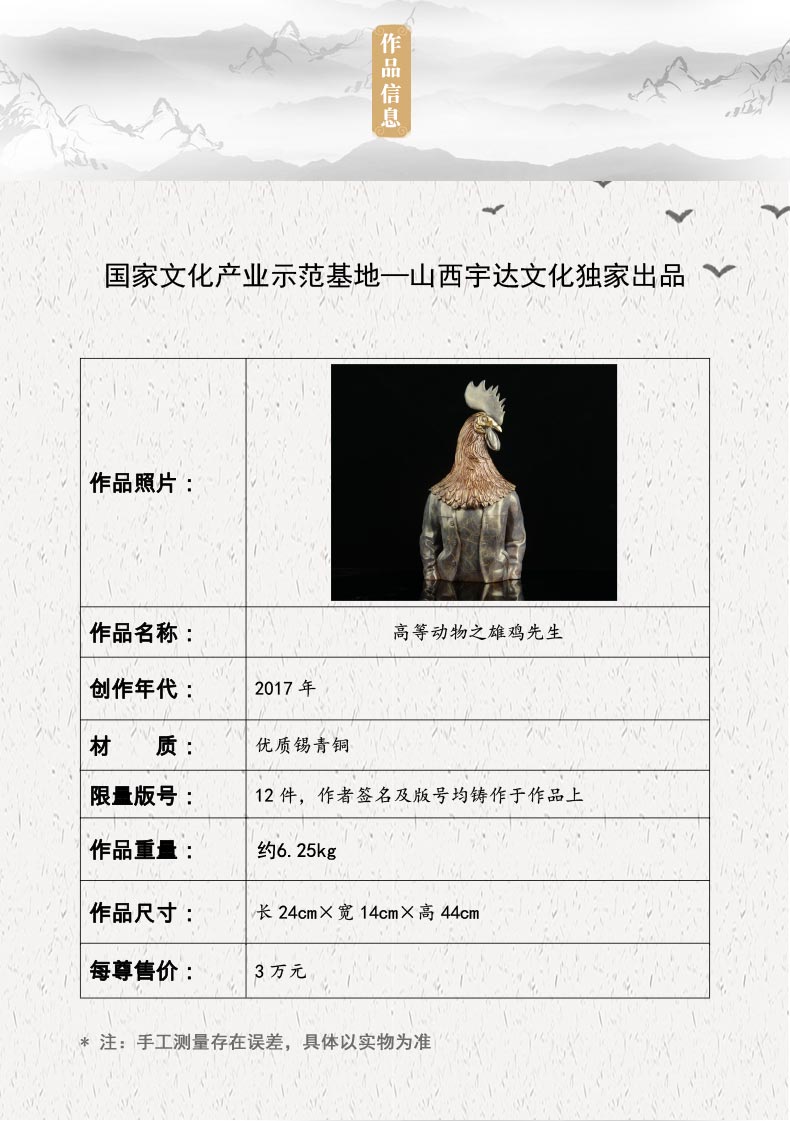 宇达青铜文化 限量12版 名家艺术品《高等动物之雄鸡先生》 作者:毛锎 高44cm